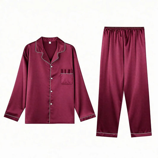 Ice Silk Long Sleeve Long Pants Men's Pajama Set