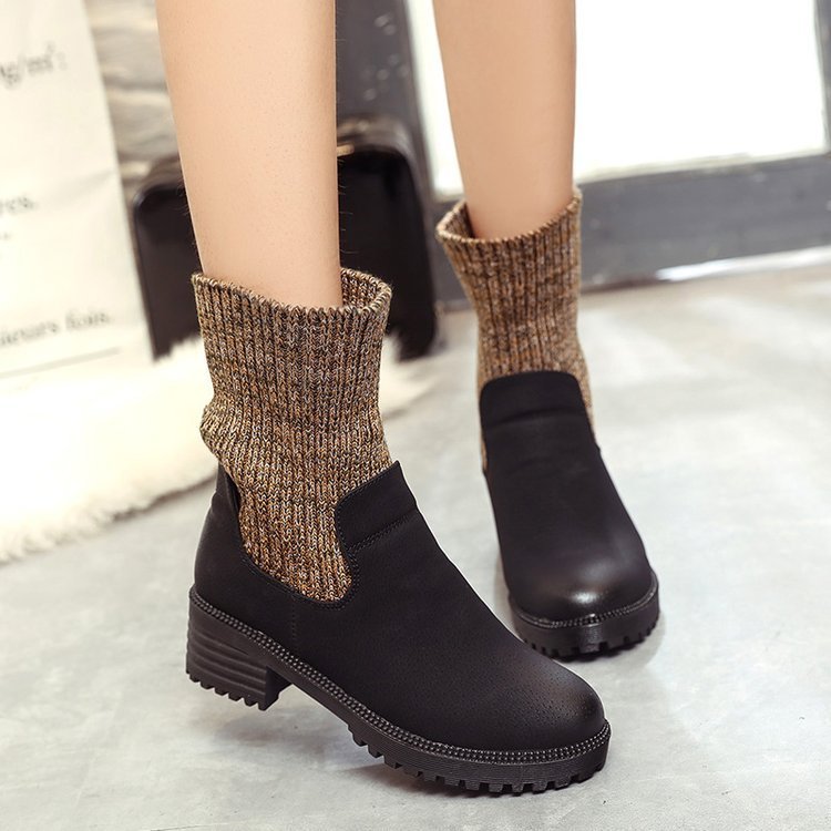 2021 new autumn and winter boots with coarse wool export Ms. Rome thick bottomed cylinder with elastic foreign trade shoes