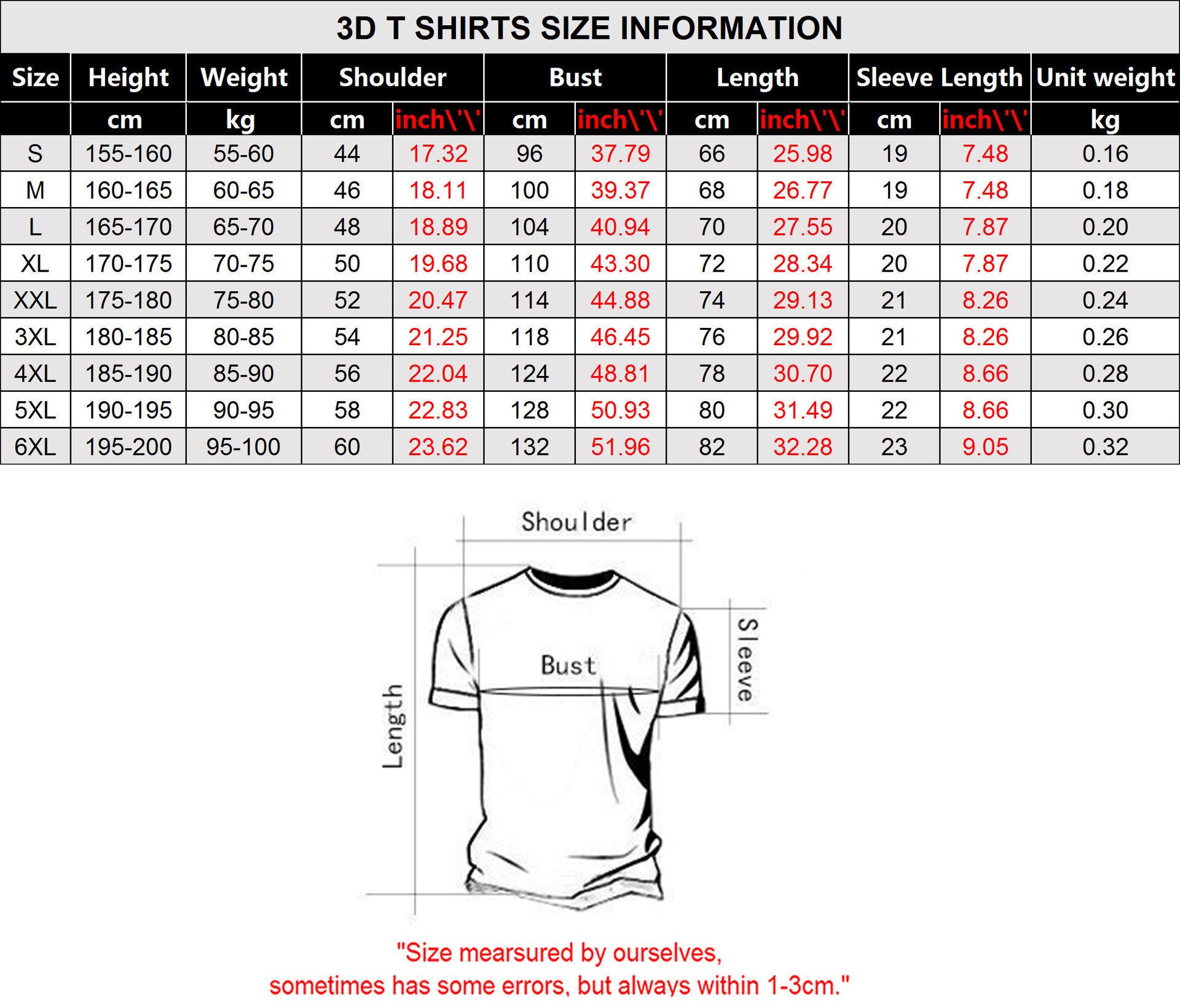 Size: small, medium, large, XXL, 3XL, 4XL, 5XL, 6XL
