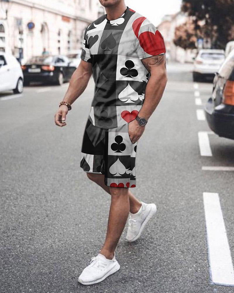 3D Digital Printing Short-sleeved Men's Shorts Suit