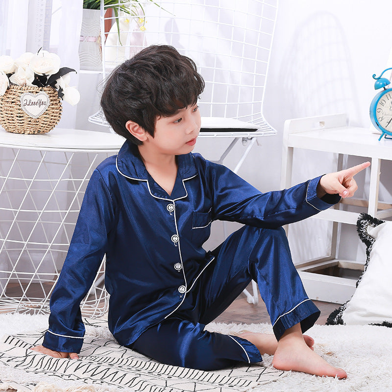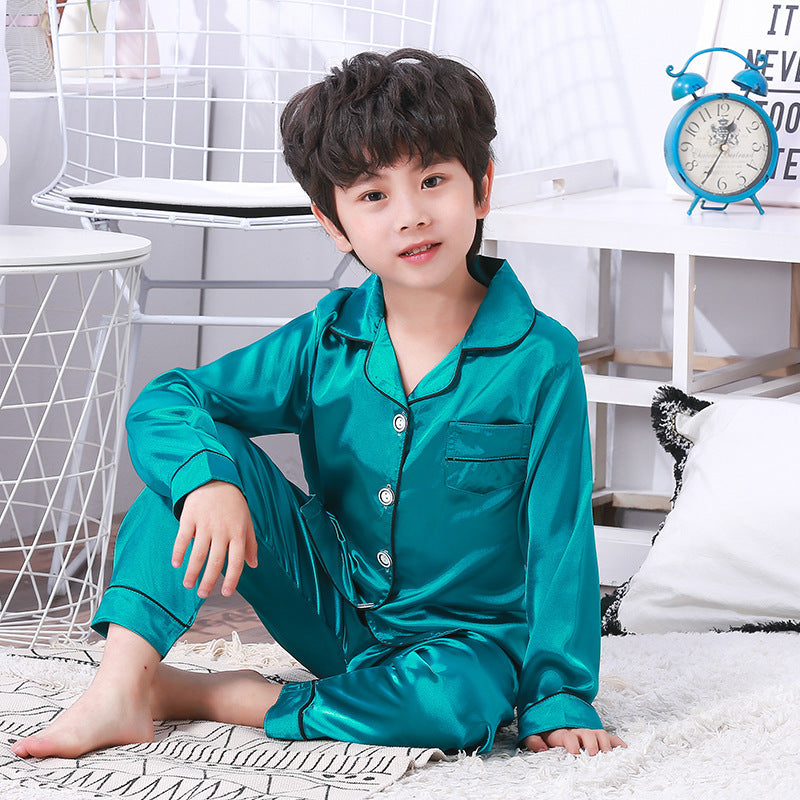 Children's Cardigan Long Sleeve Pajamas Girls Boys Ice Silk Solid Color