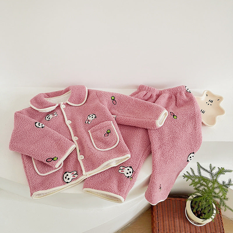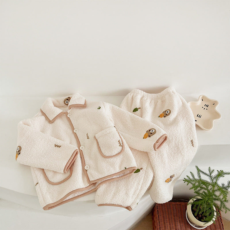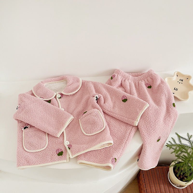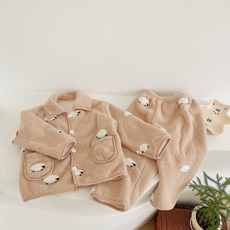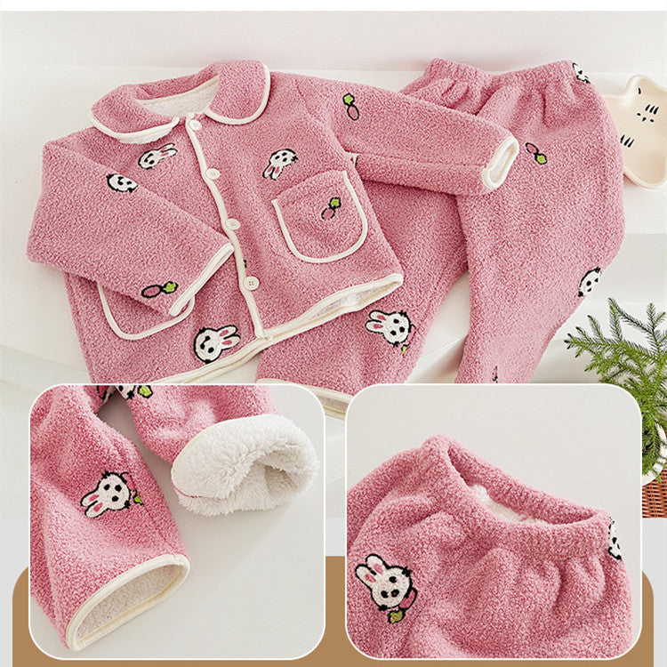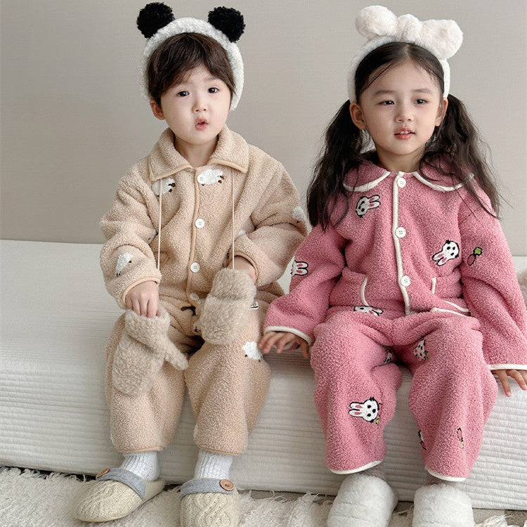 Children's Cartoon Lamb Wool Double-sided Velvet Thickened Pajamas Set