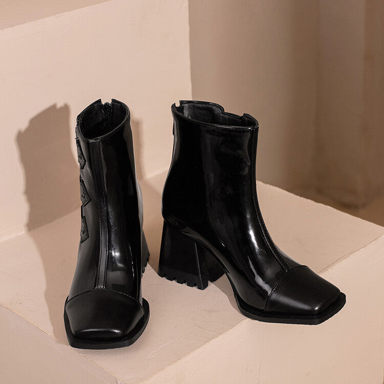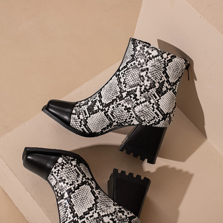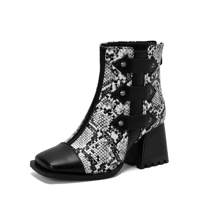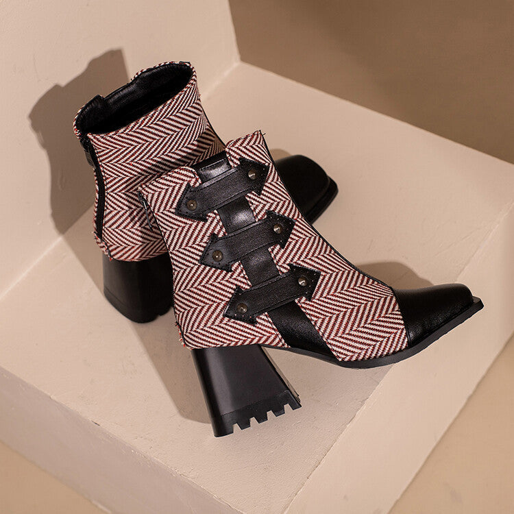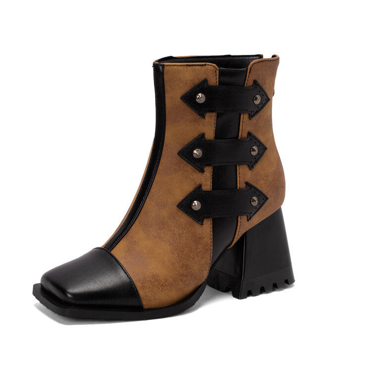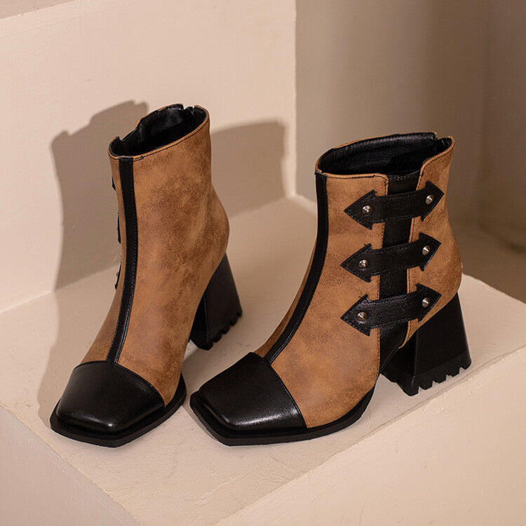 Color Matching Square Toe High Heel Autumn And Winter New Women's Boots