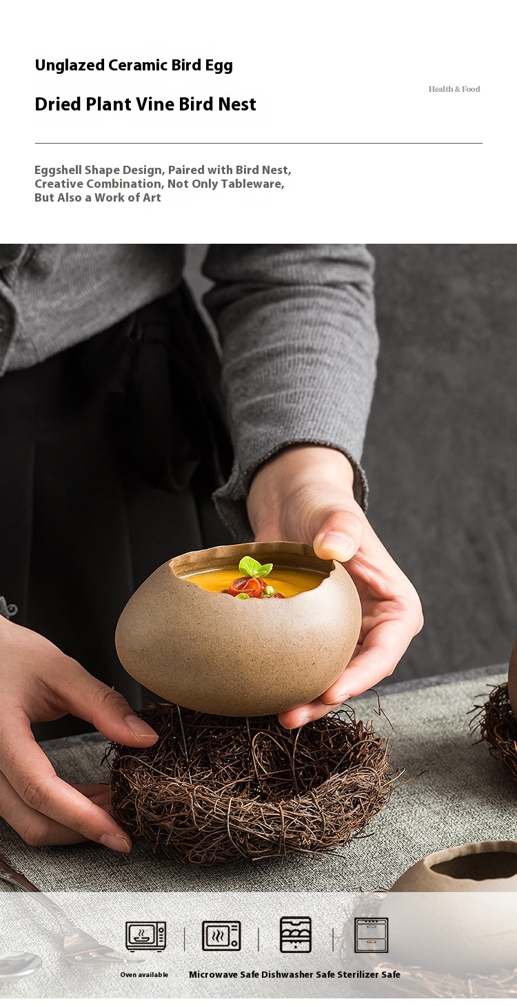 This exceptional bowl represents the perfect fusion of artistic creativity and practical functionality. The egg shell-inspired design creates a unique conversation piece while the premium porcelain construction ensures durability for both professional and home use.