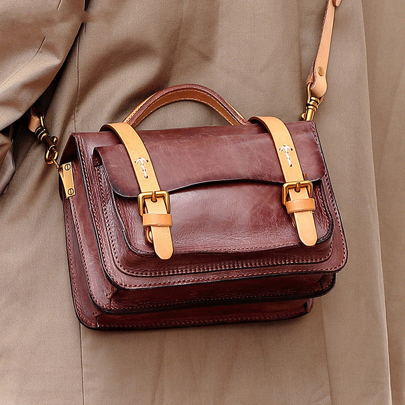 Crossbody Shoulder Bag Vegetable Tanned Leather Shoulder Bag Multifunctional Retro Leather Handbag