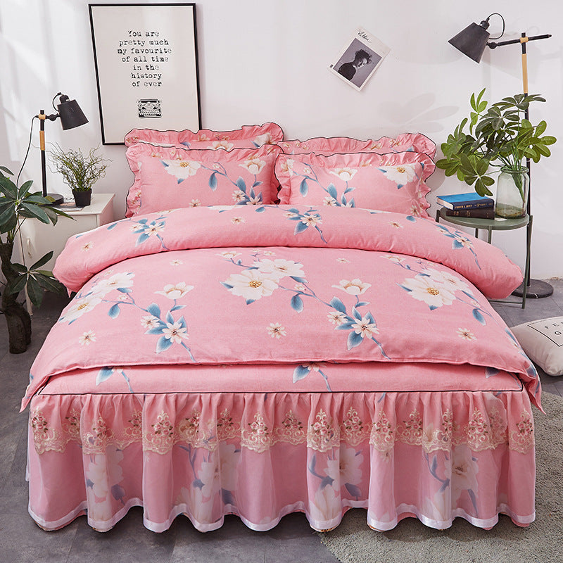 Four-Piece Lace Bed Skirt Non-Slip Bedspread