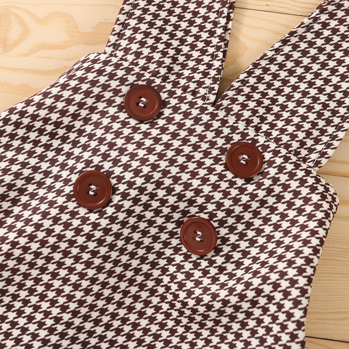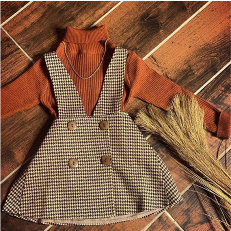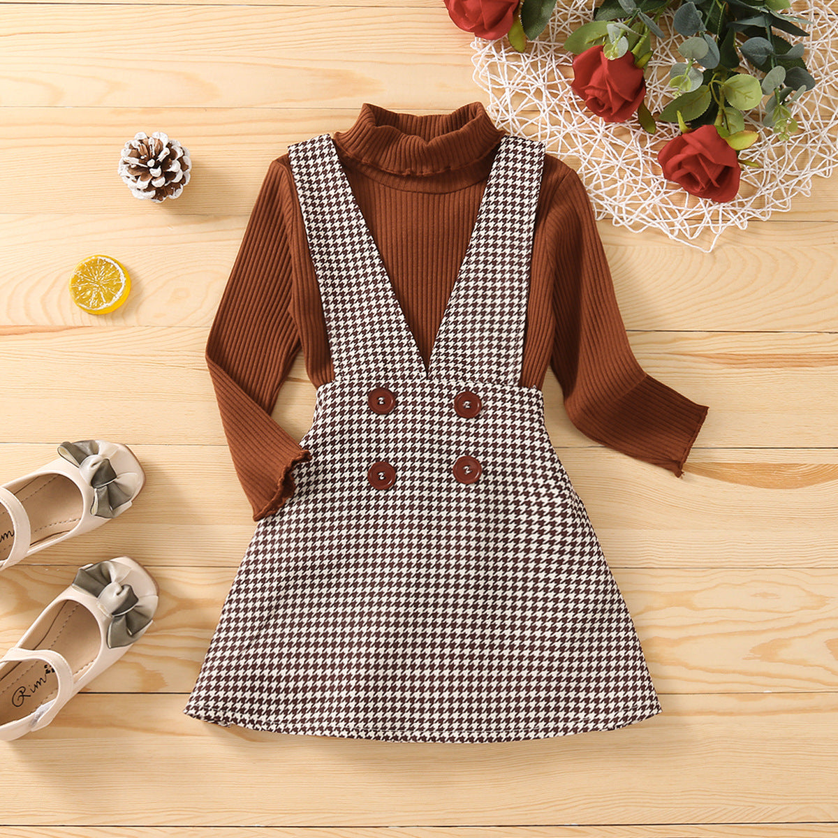 Girls' Pure Cotton Pit Strip High Neck Pullover Houndstooth Skirt Suit