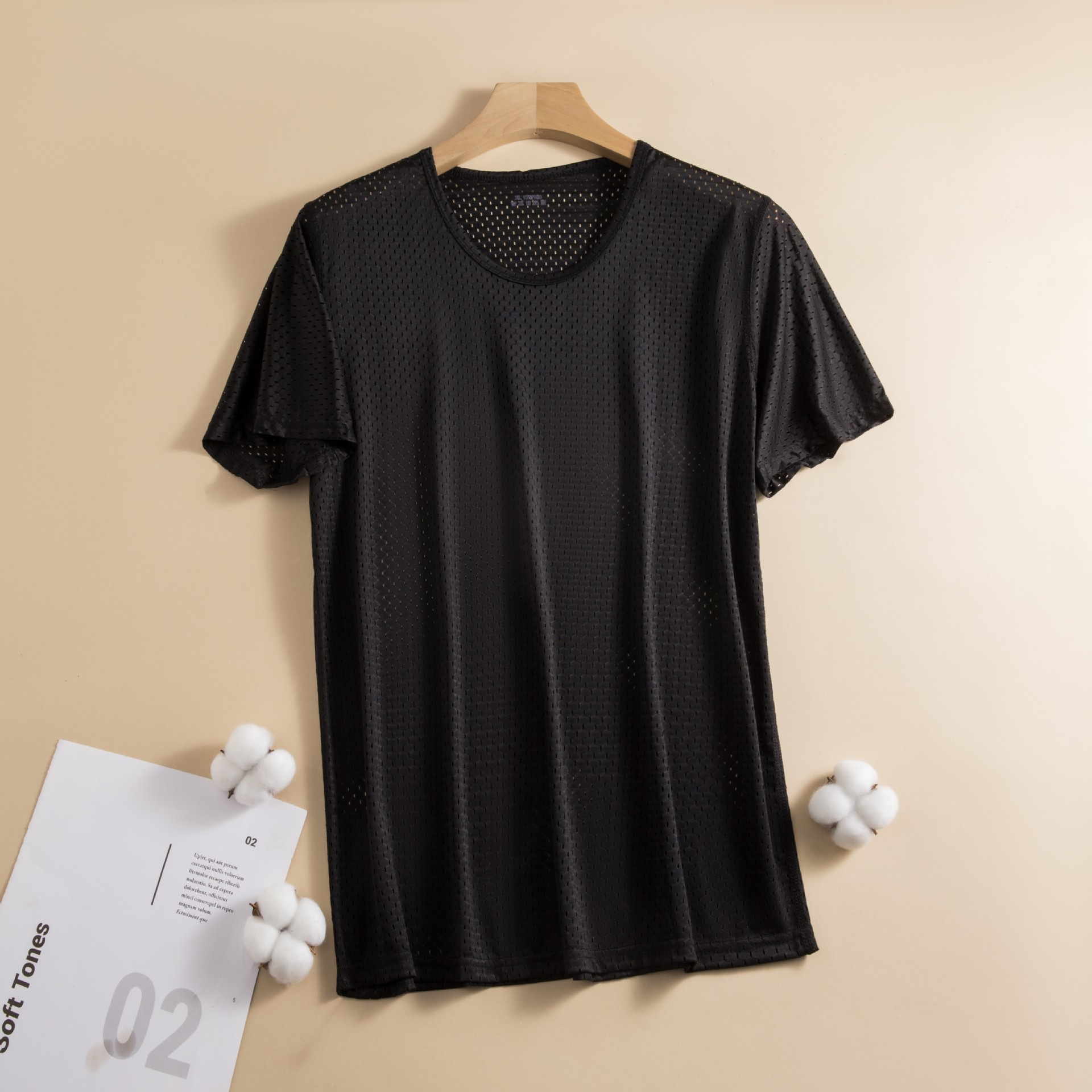 Ice Silk Short Sleeve T-shirt Men's Ultra-thin Mesh Loose Quick-drying Crew Neck