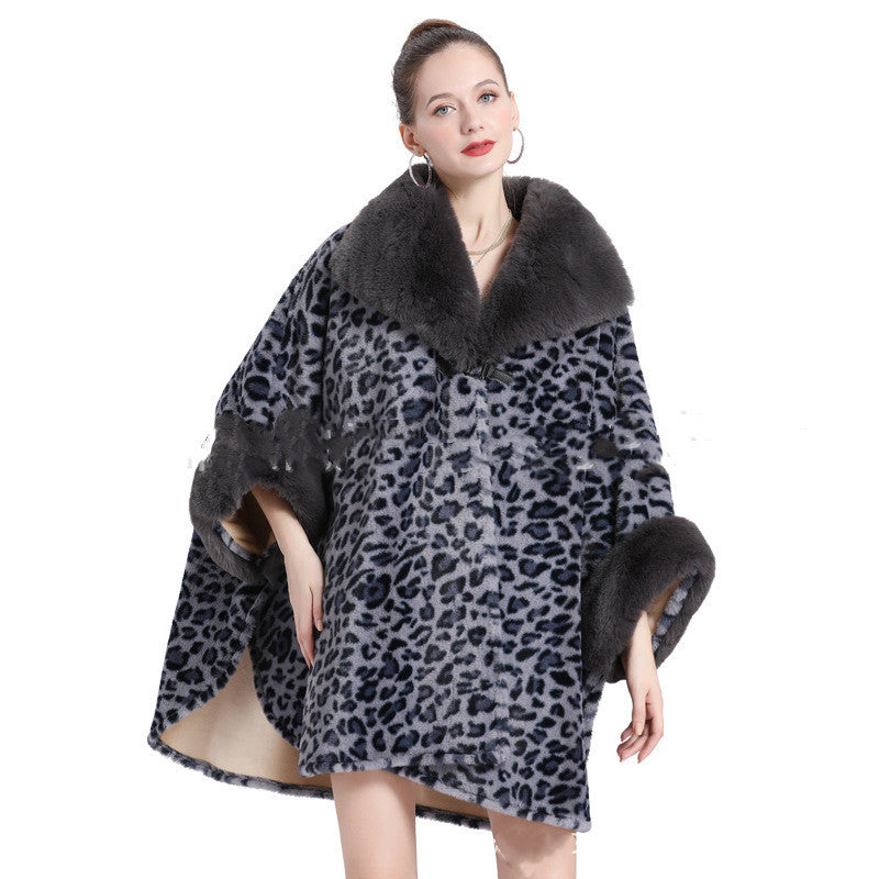 Leopard Print Big Hair Leader Mouth Cardigan Cape Women