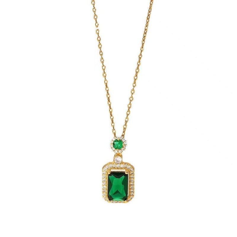 Light Luxury Emerald High-grade Pendant Necklace Ins Hong Kong Style Three-piece Necklace Earring Ring