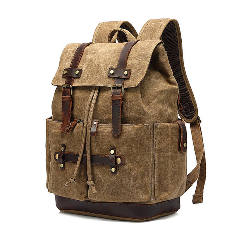 Men's Canvas Backpack Oil Wax Waterproof Computer Bag