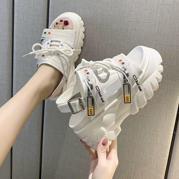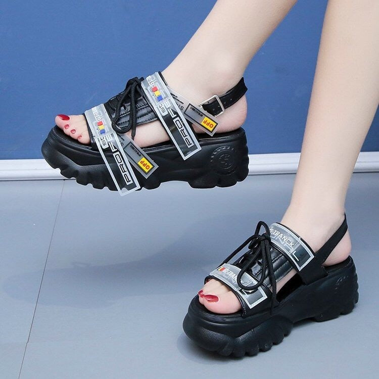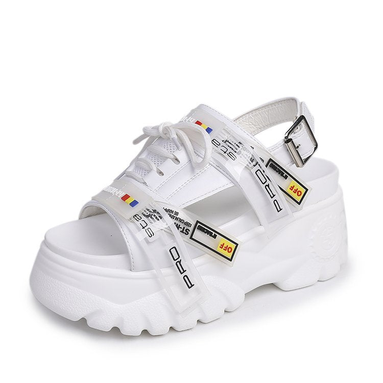 Net Red Sandals Female Summer Fairy Wind Slope With New Wild Sponge Cake Thick-Soled Casual Heightening Beach Roman Shoes