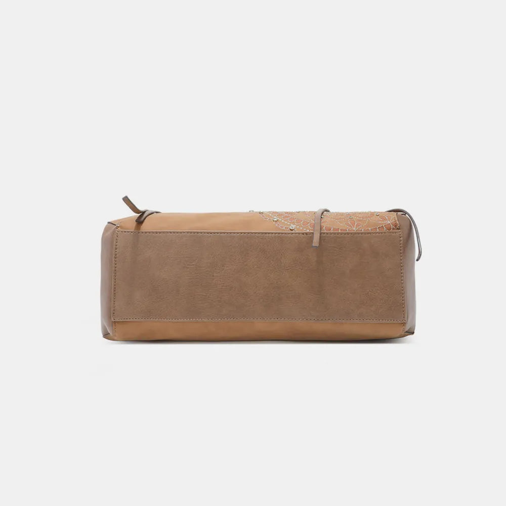 This luxurious hobo bag from Nicole Lee USA is a perfect blend of style and functionality. With its side braided tassel and inlaid rhinestone embroidery, it adds a touch of elegance to any outfit. The spacious interior provides ample room for all your essentials, making it a great everyday bag or special occasion accessory.