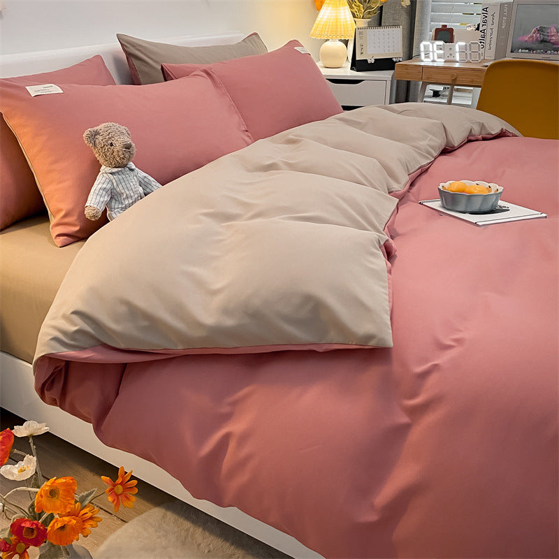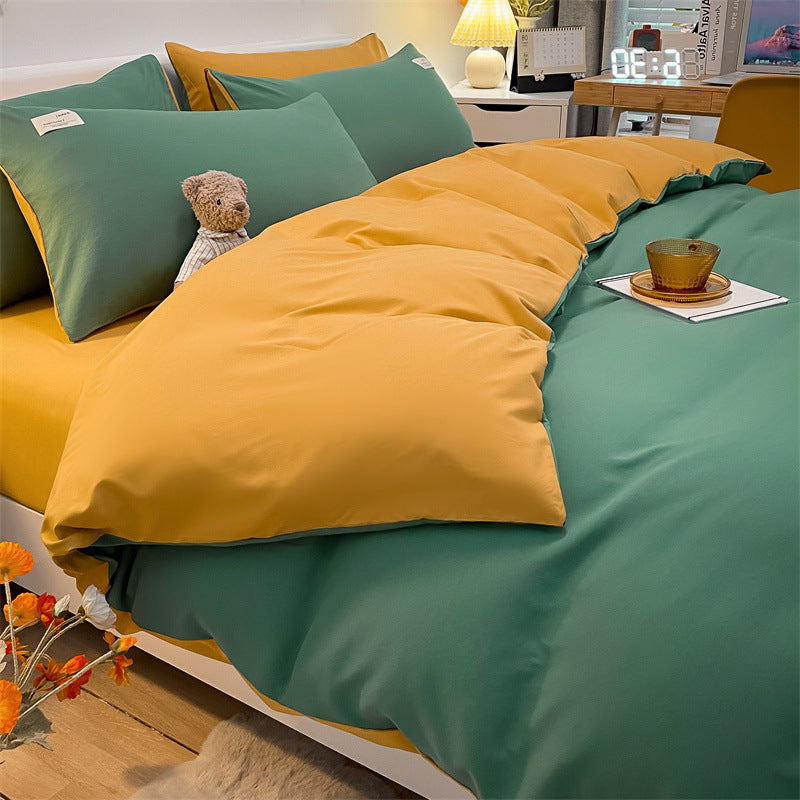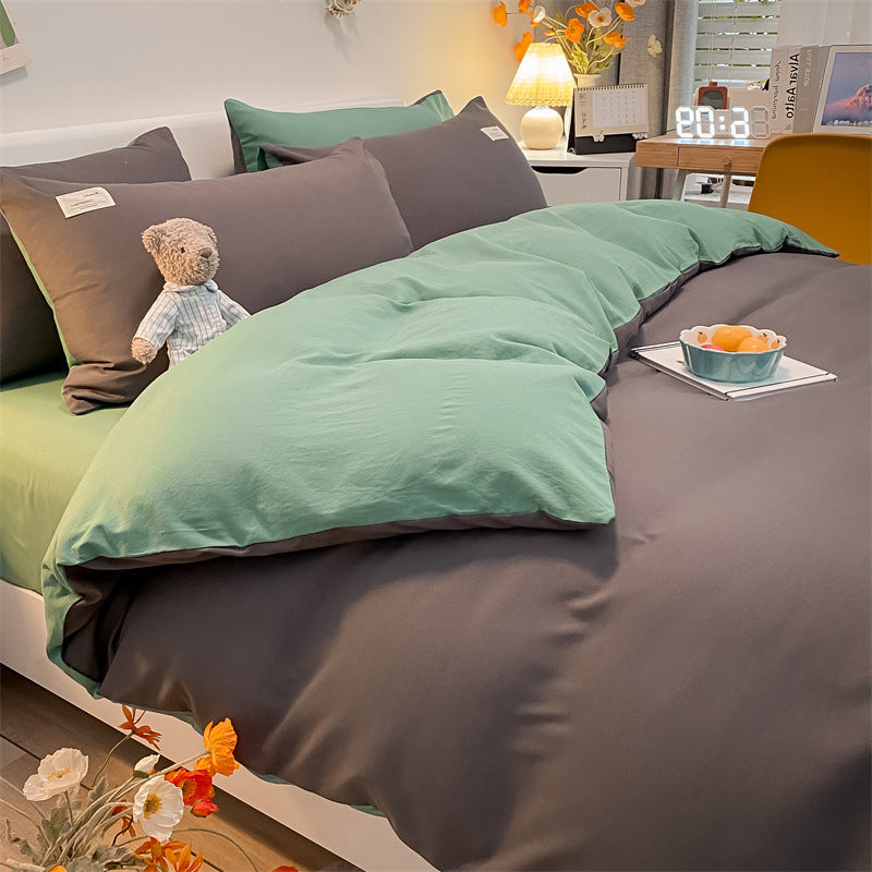 Pure Color Washed Cotton Four-piece Set Of Plaid Striped Sheets Quilt Cover Bedding