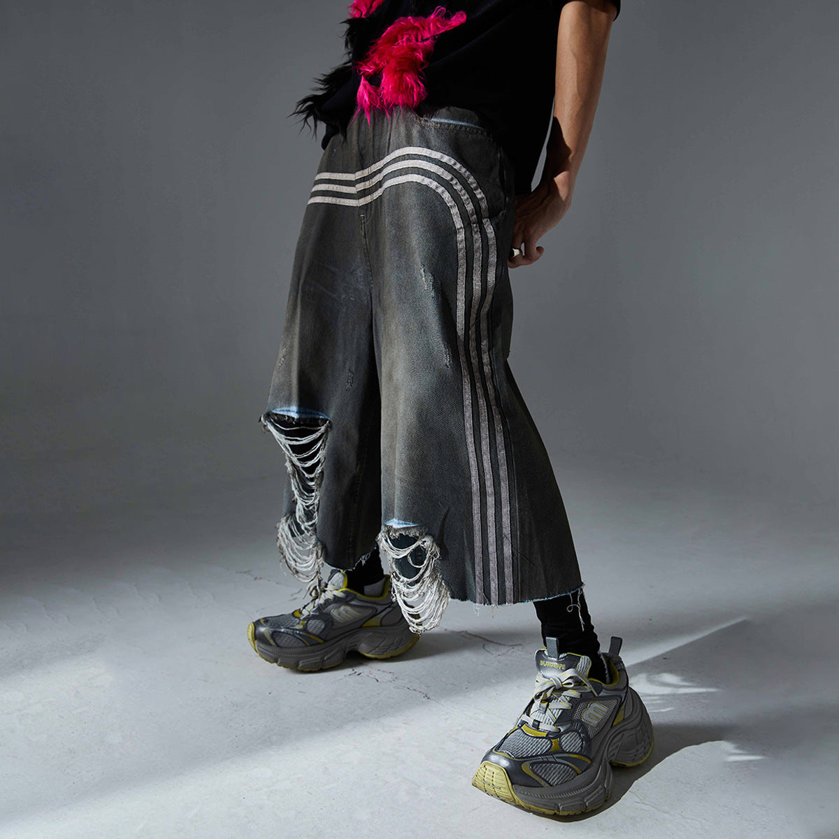 Retro Dirty Dyed Washed Denim Shorts Loose Straight