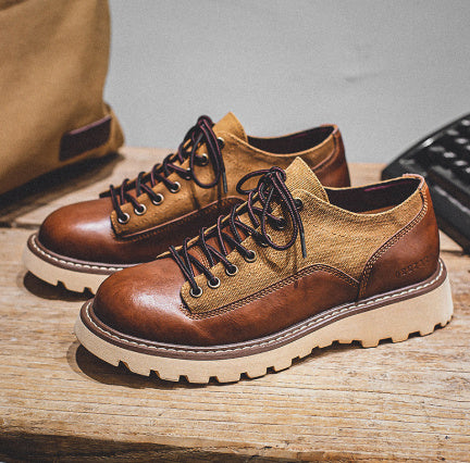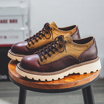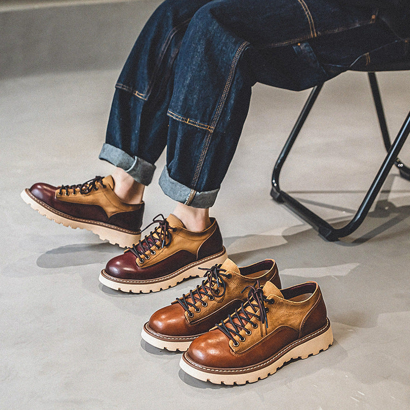 🥾 Round Toe Tough Guy Lightly Mature Genuine Leather Platform Casual Fashion Shoes