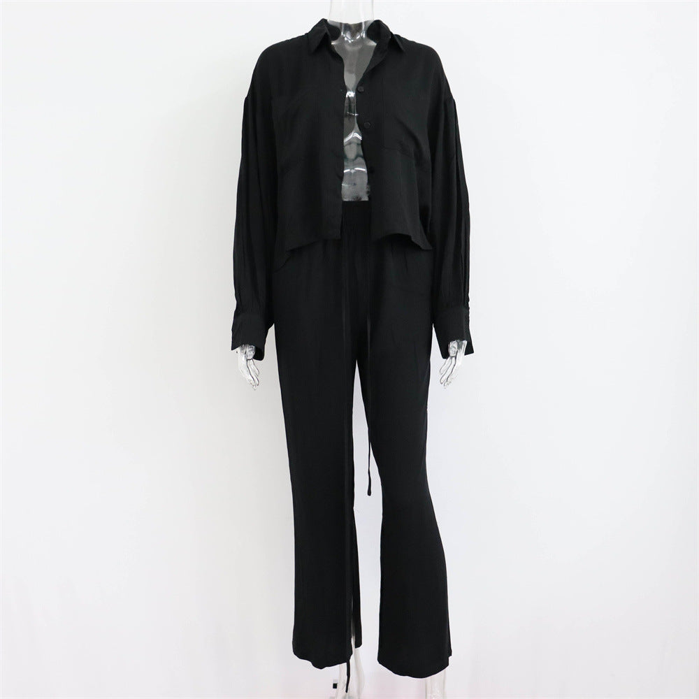 Shirts Tops Slit Wide-leg Pants Two-piece Casual