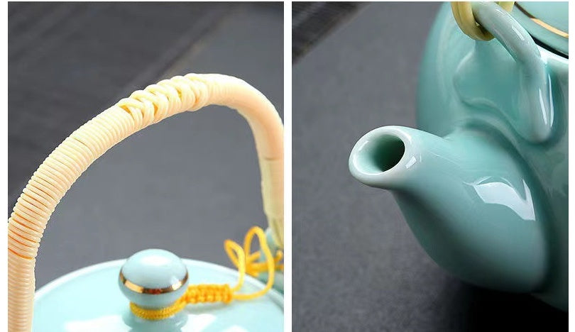 🏺 Simple Hand-painted Gold Large Teapot Ceramic - Kung Fu Tea Set Porcelain with Bamboo Tray