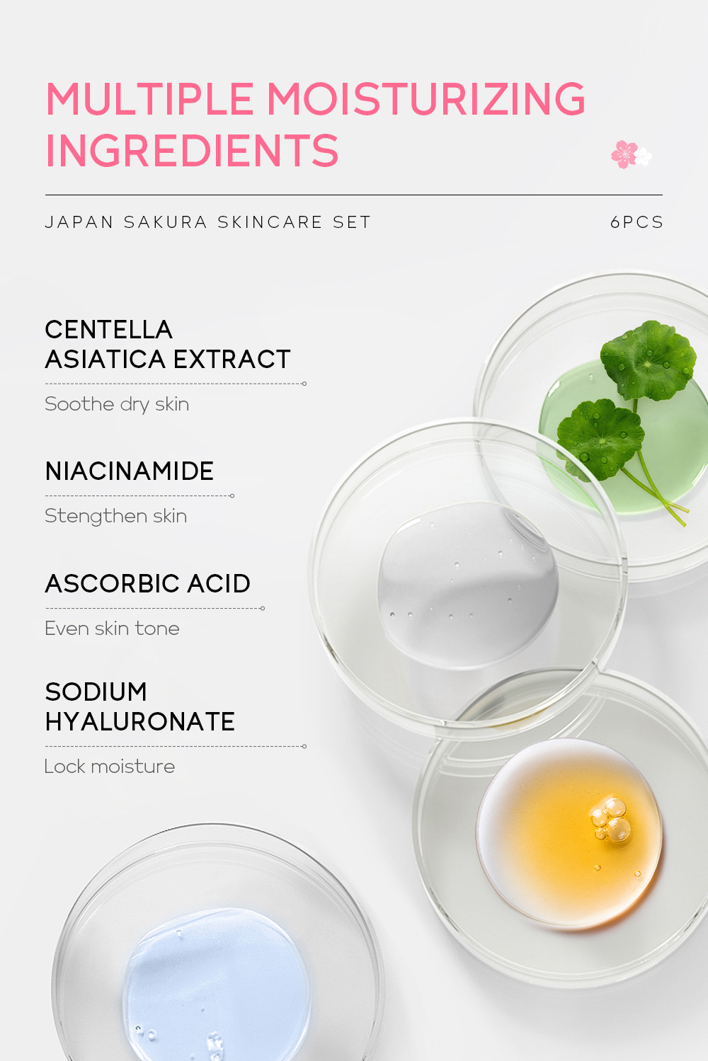 Skin Care Set JAPAN SAKURA Women Beauty Gift Sets Skin Care Kit With Cleanser, Toner, Lotion, Serum, Eye Cream, Face Cream Travel Kit For Women Teen Girls Mom Daughter TSA-friendly Sizes 6pcs
