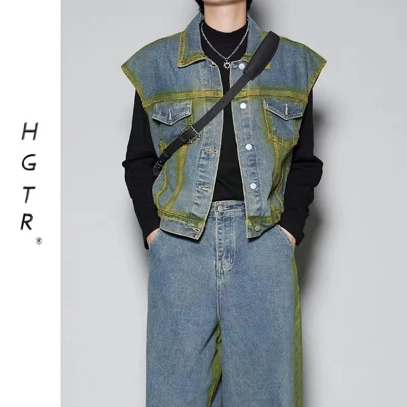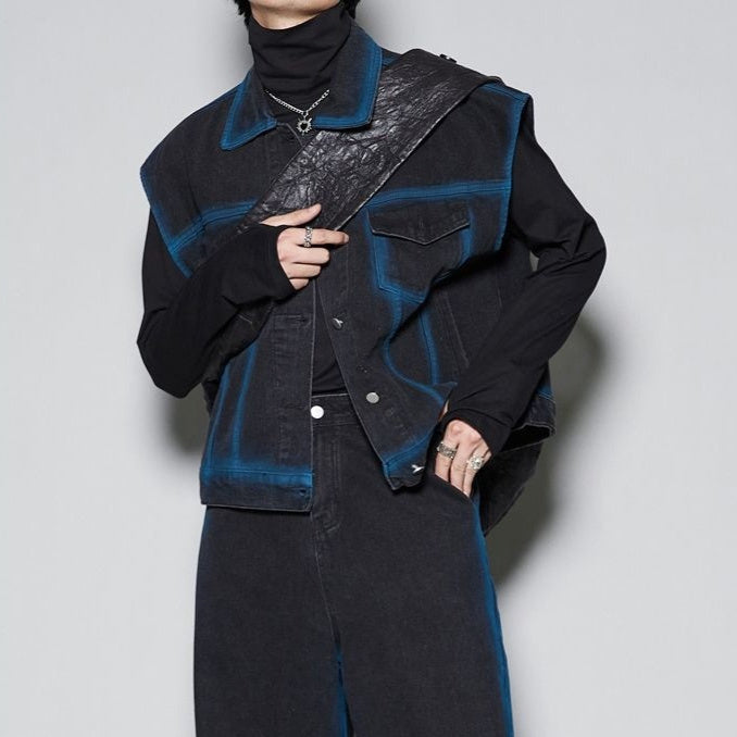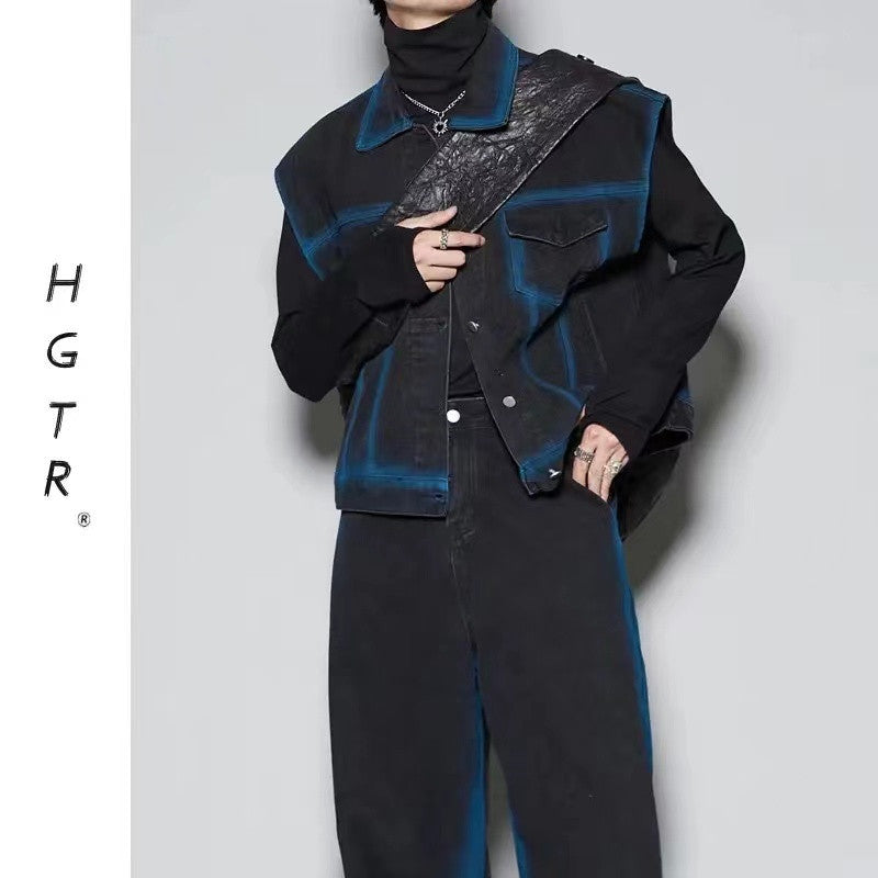 Spray Color Gradient Distressed Vest Coat Jeans Suit