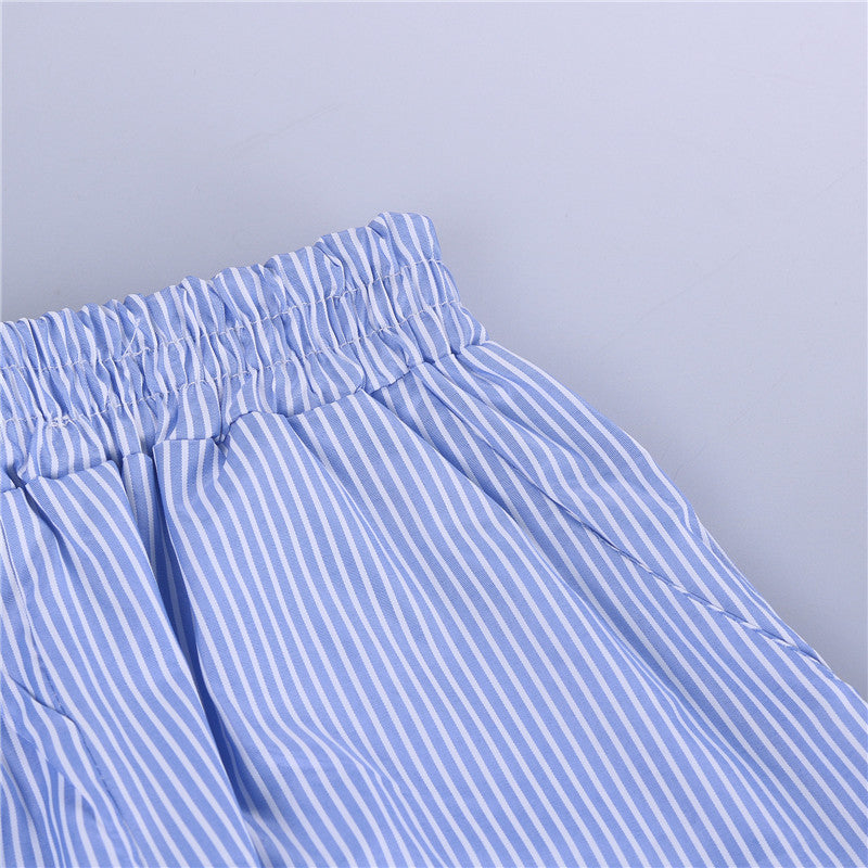 Striped Loose Shirt Shorts With Pockets Fashion Casual Suit