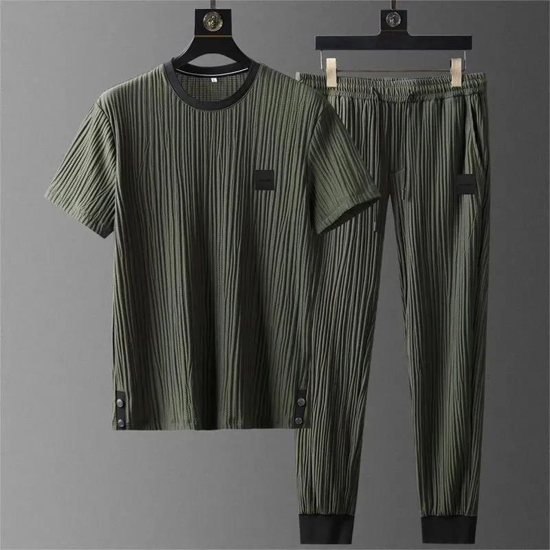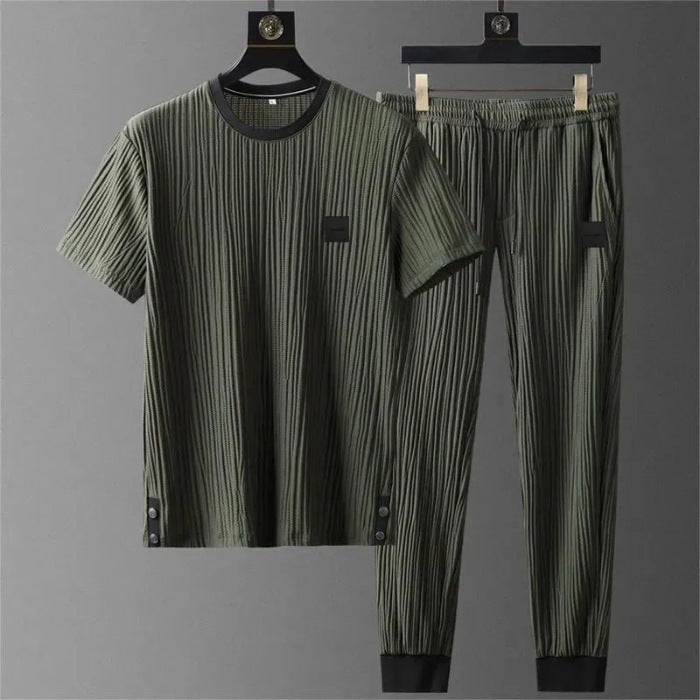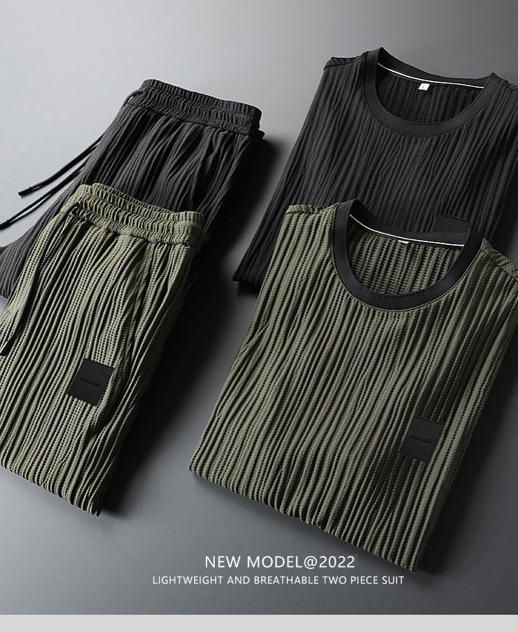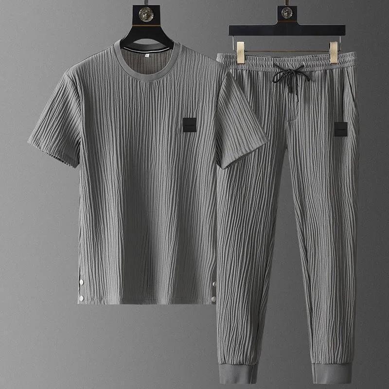 Summer High Elasticity Ice Silk Leisure Sports Suit Men