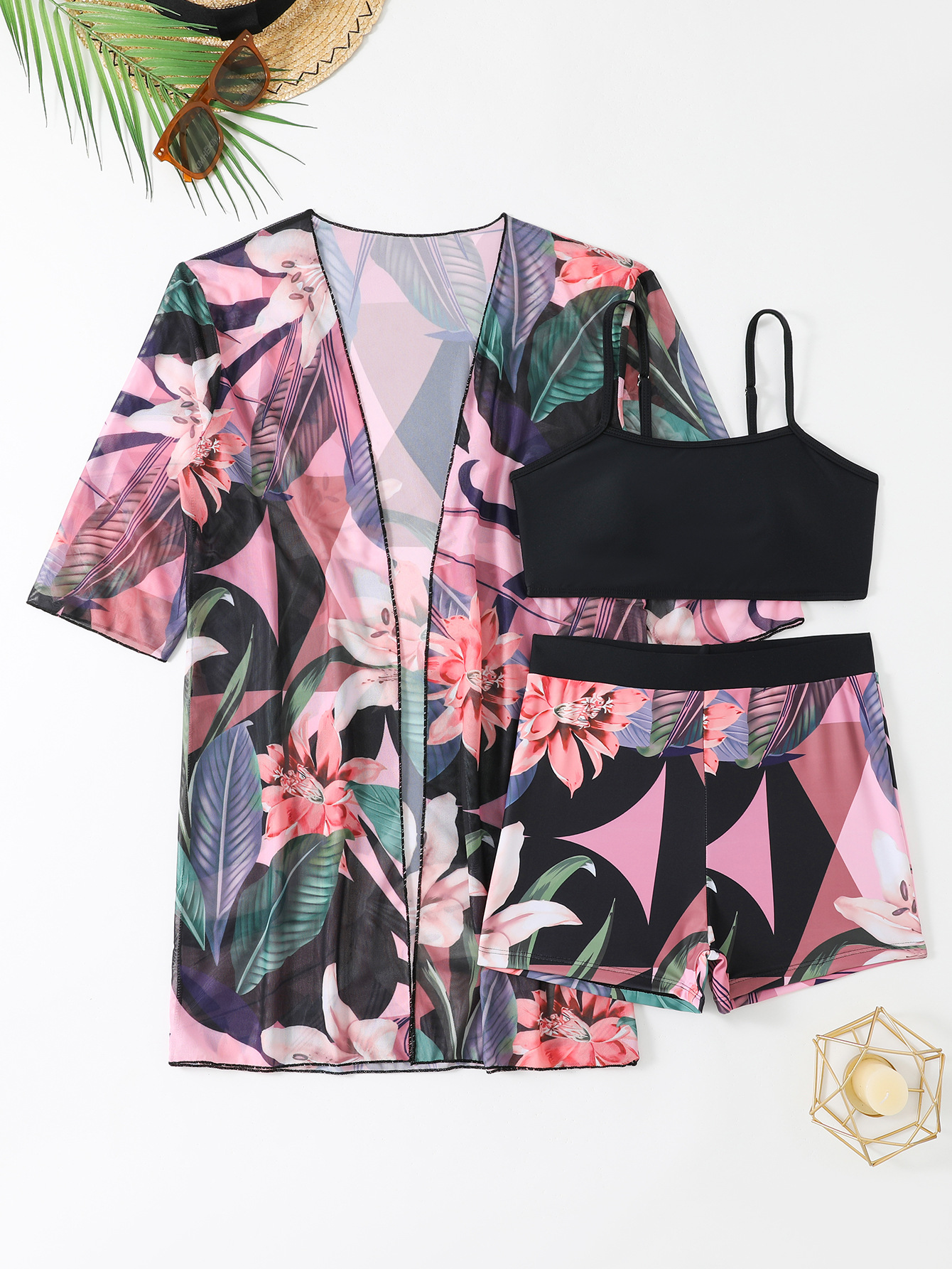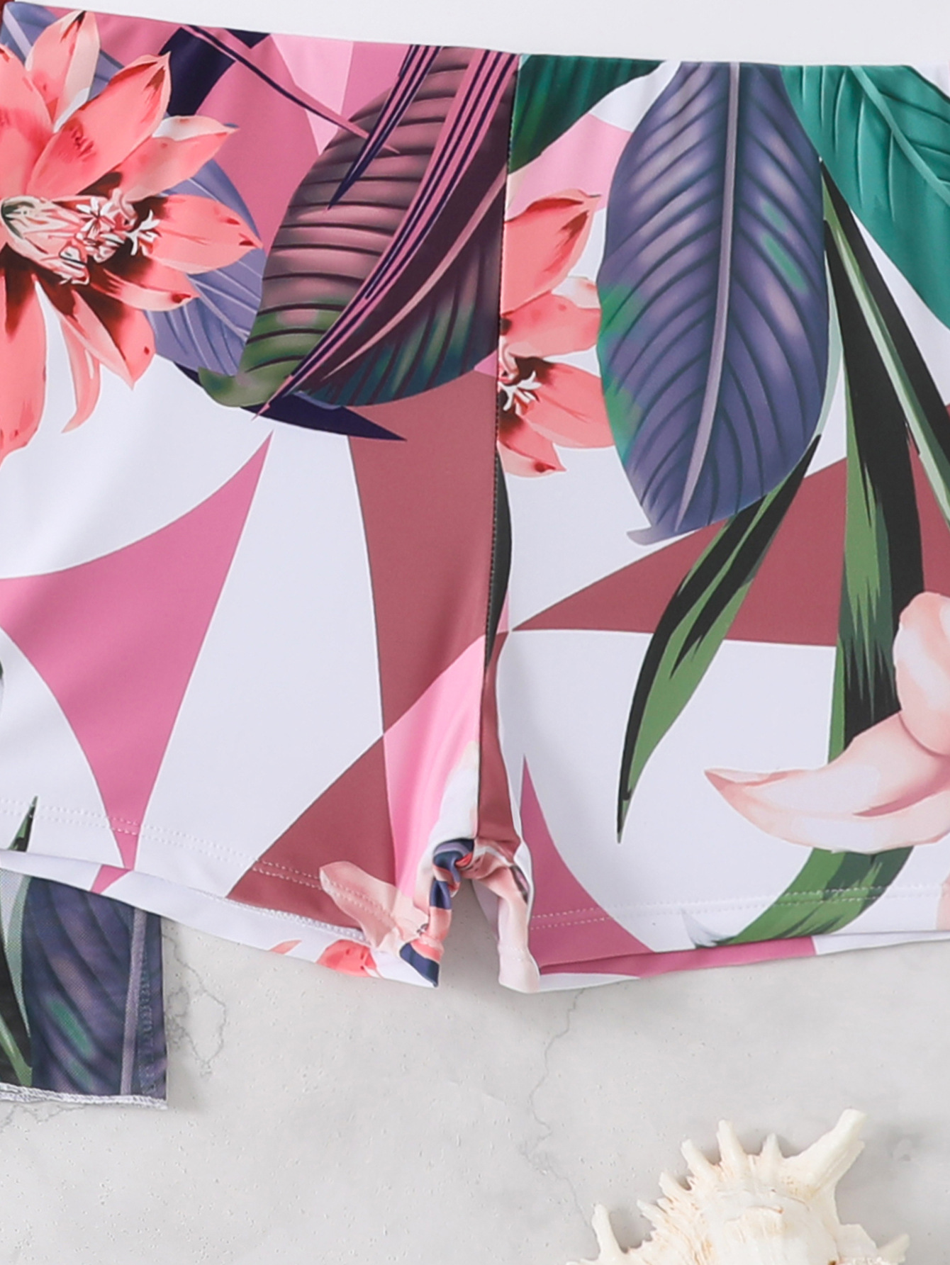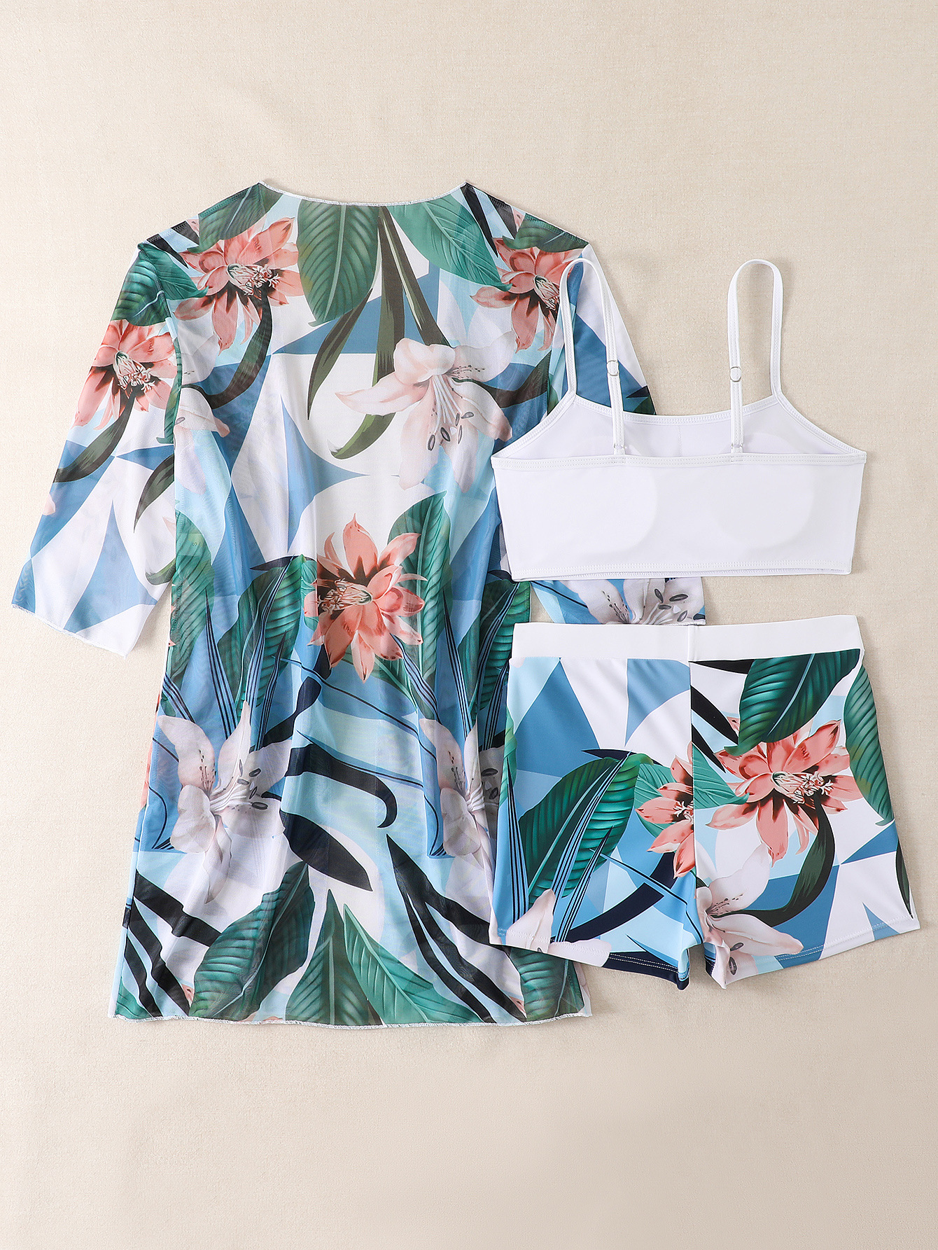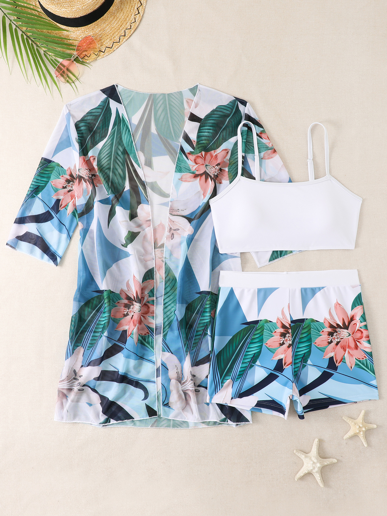 Sun Protective Blouse Printed Split Strap Tube Top Three-piece Bikini Swimsuit