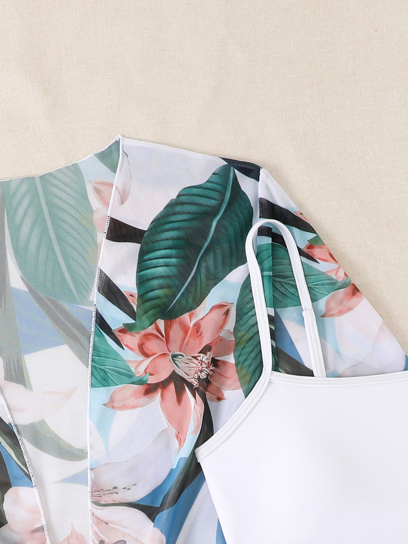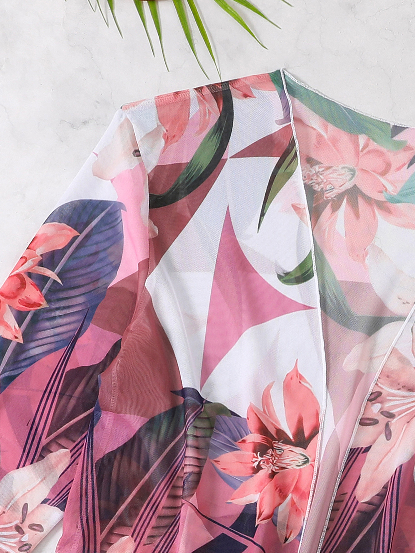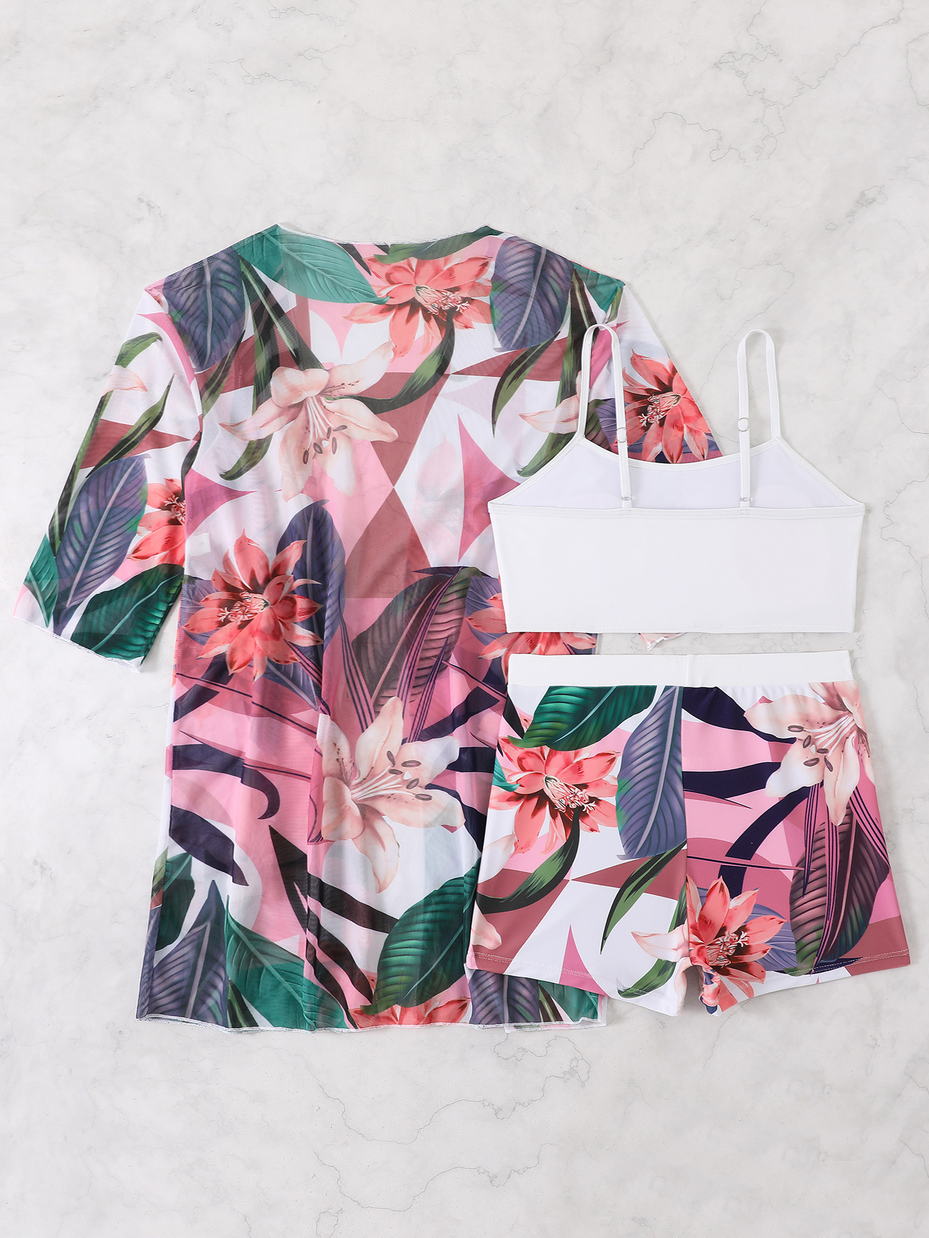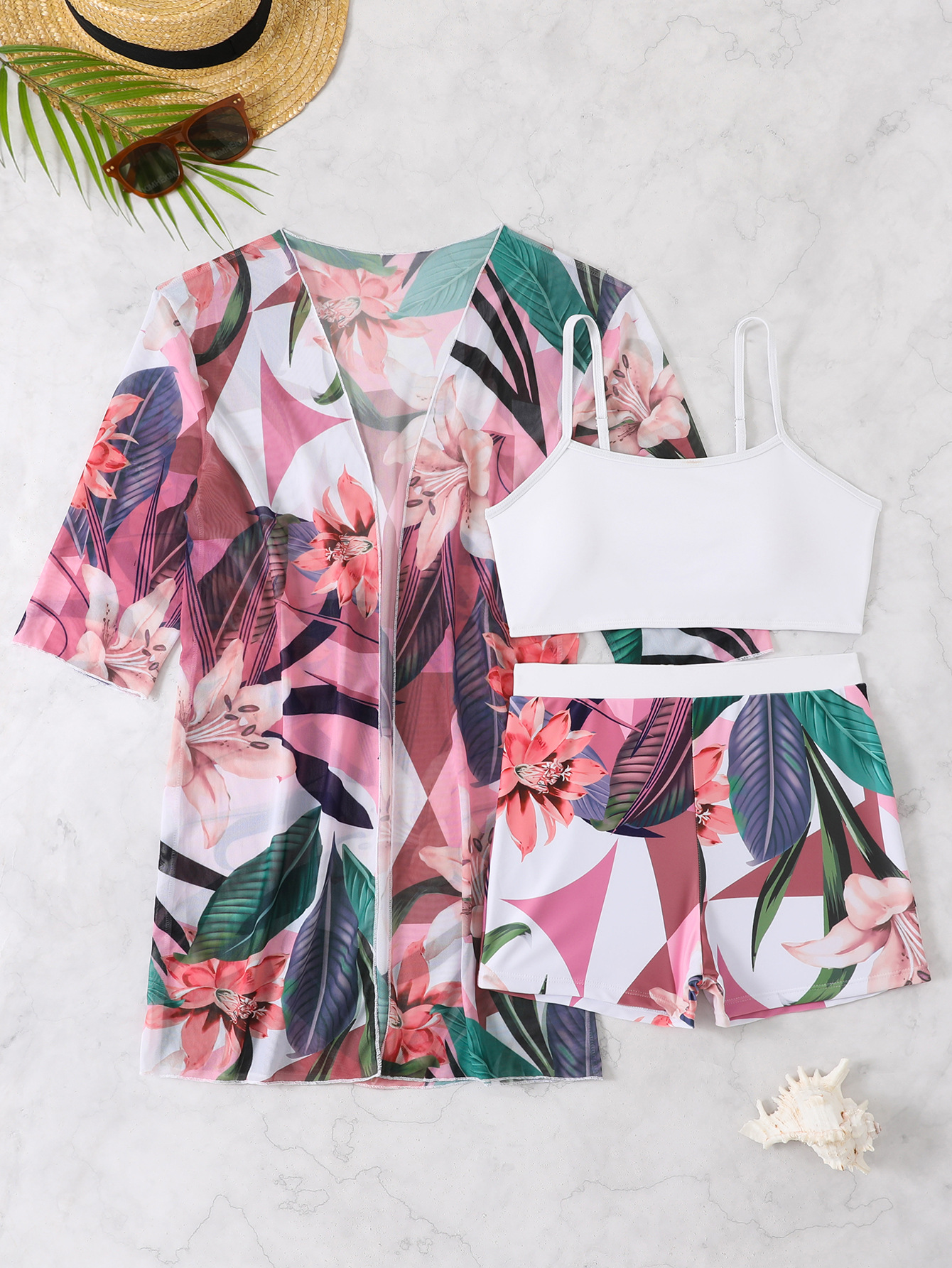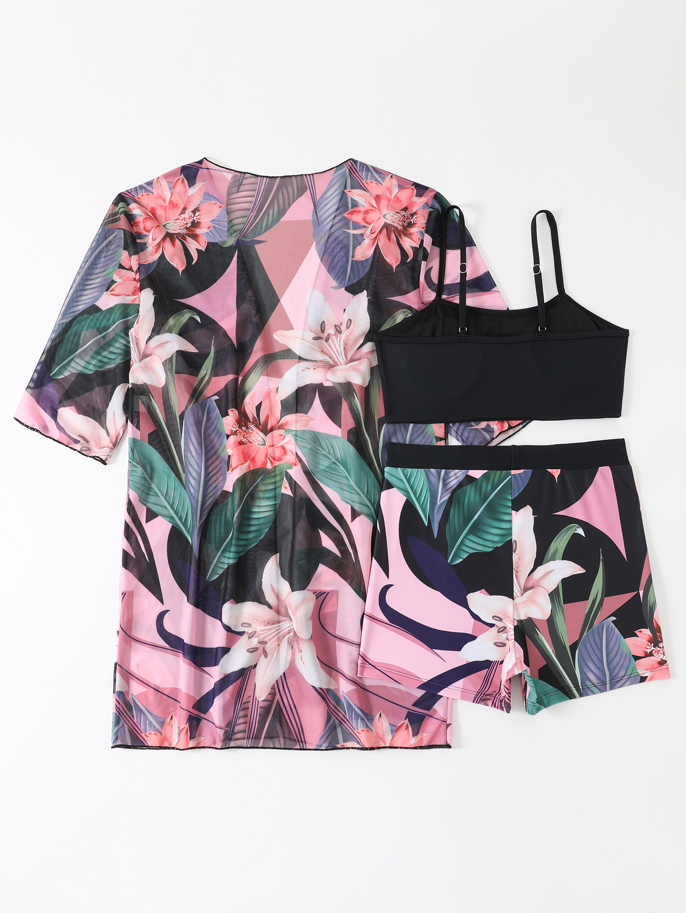 Sun Protective Blouse Printed Split Strap Tube Top Three-piece Bikini Swimsuit
