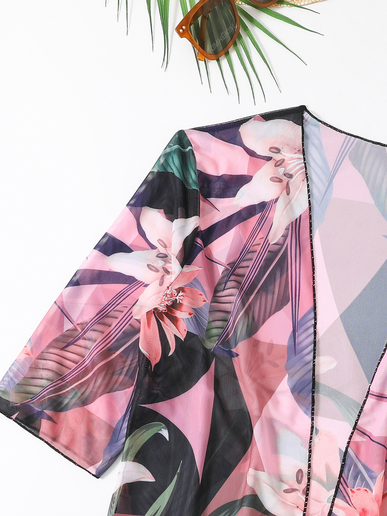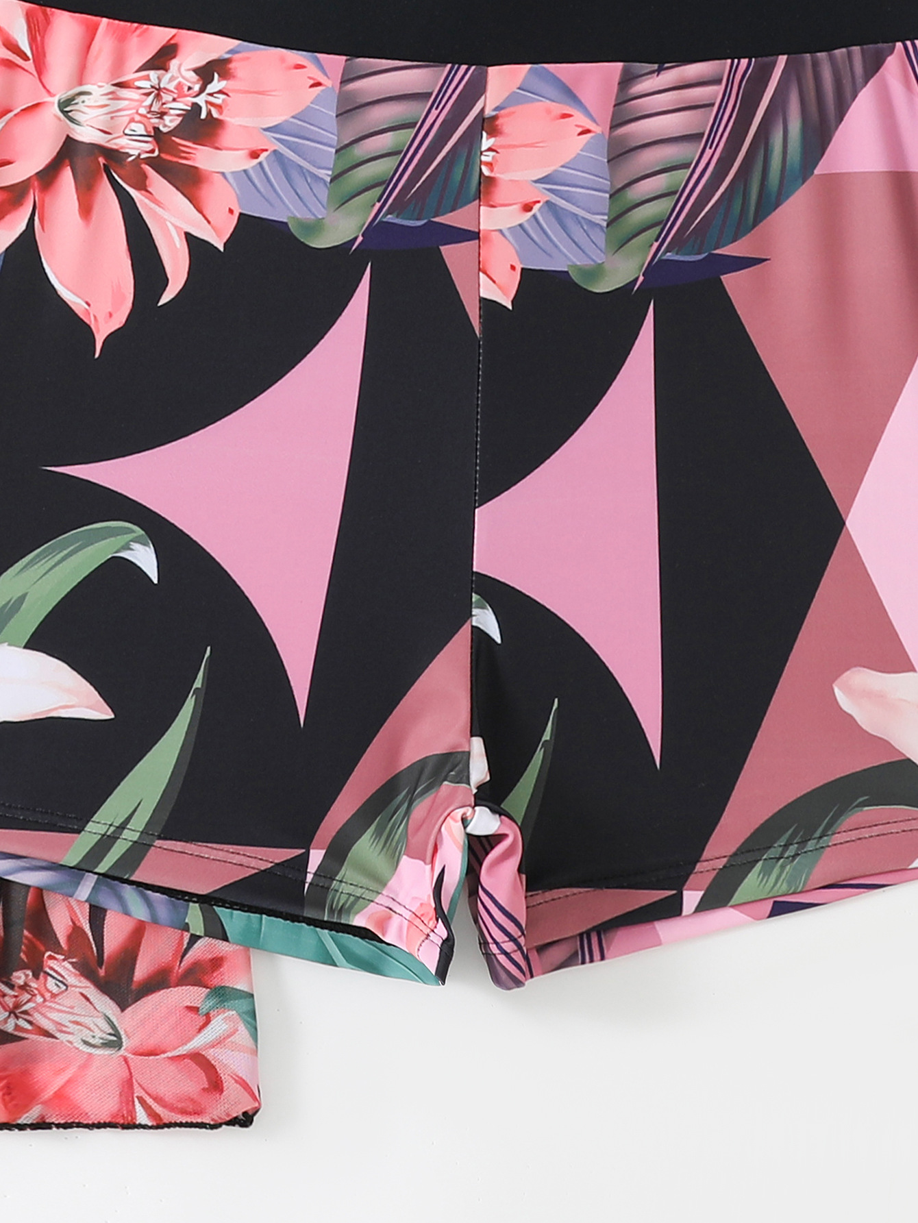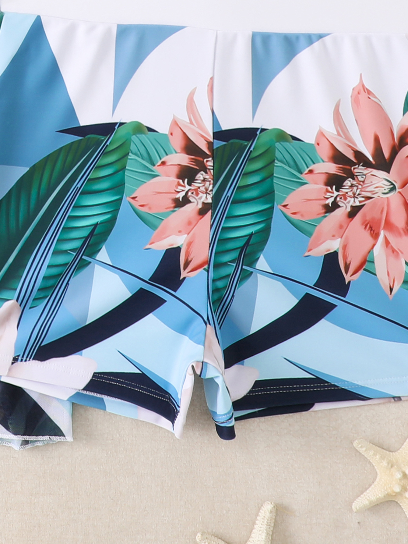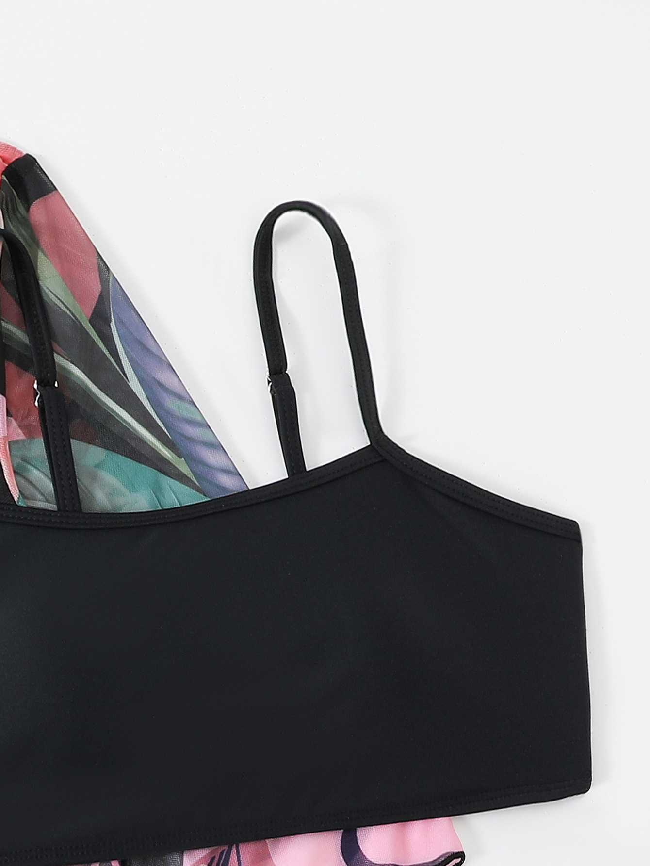 Sun Protective Blouse Printed Split Strap Tube Top Three-piece Bikini Swimsuit