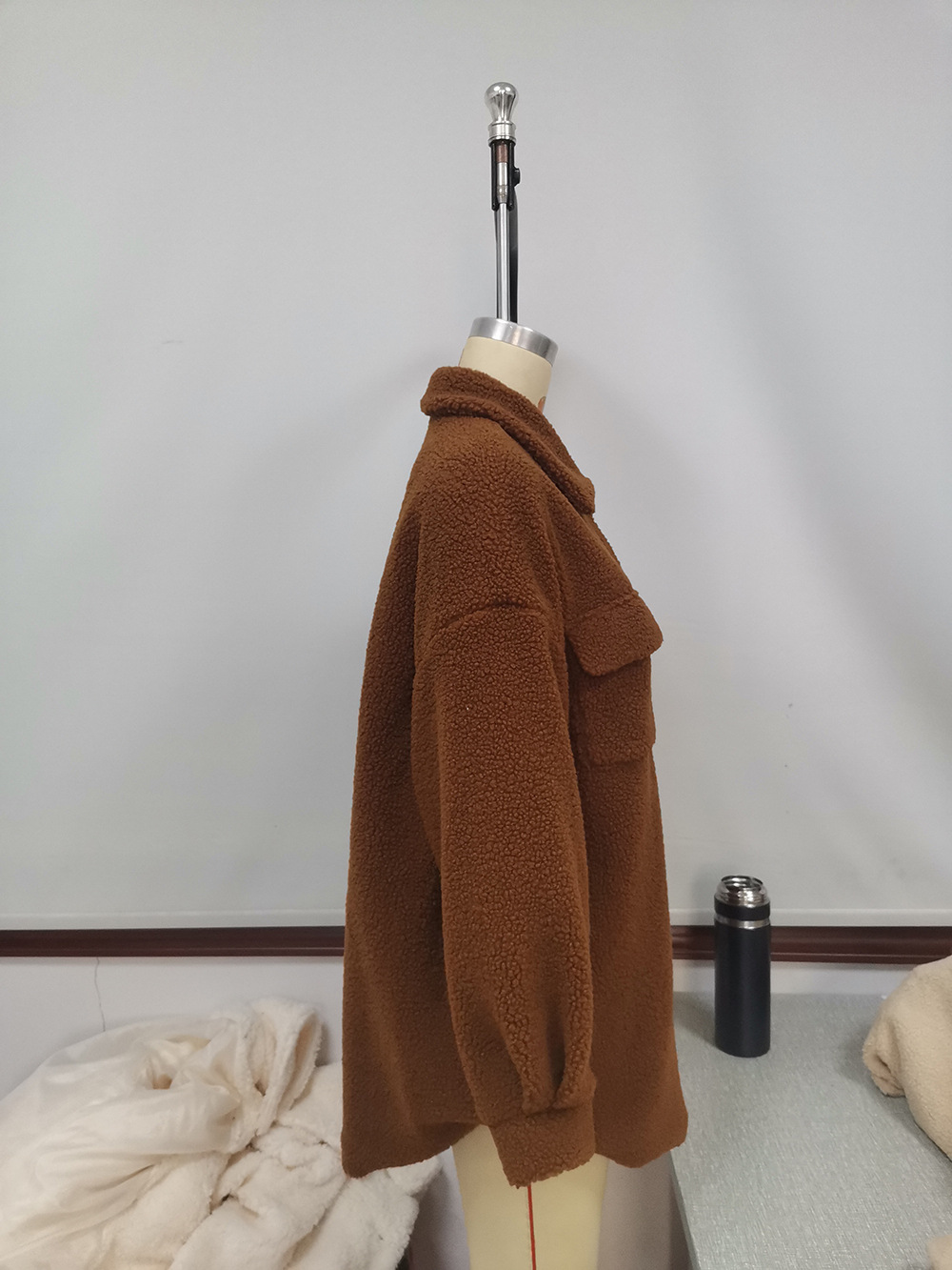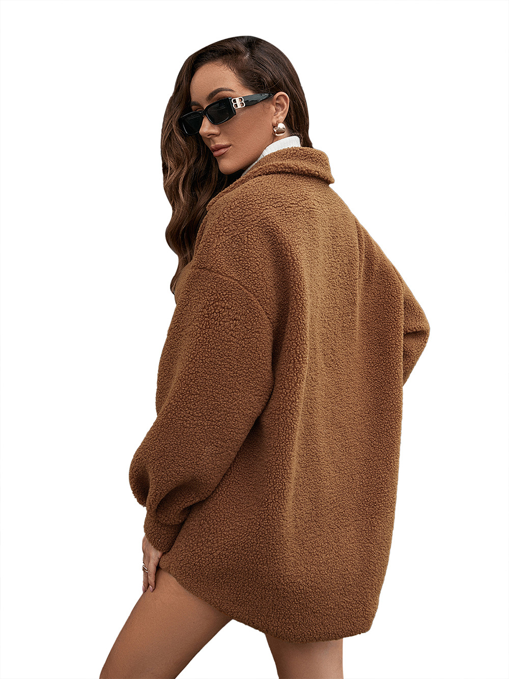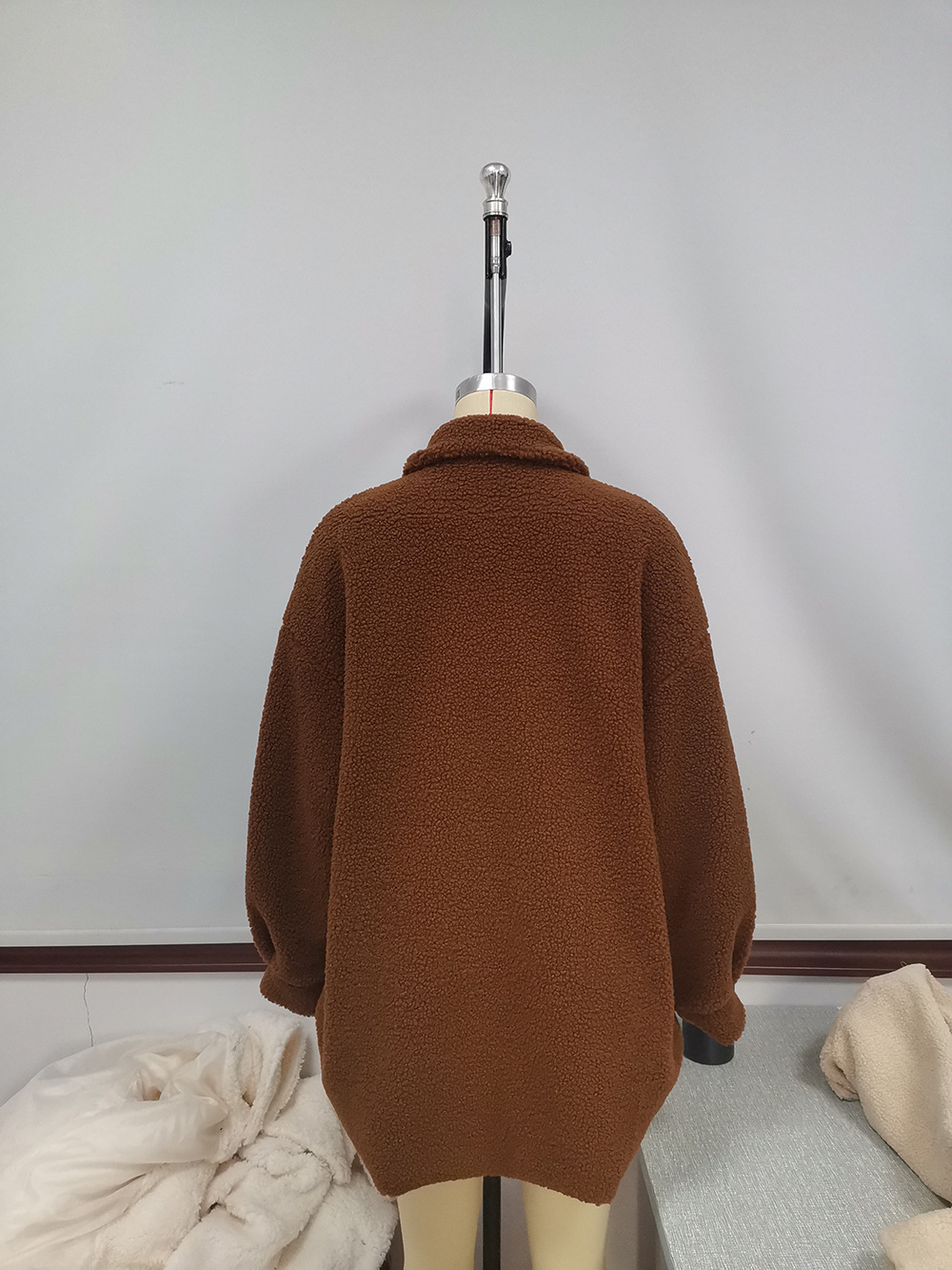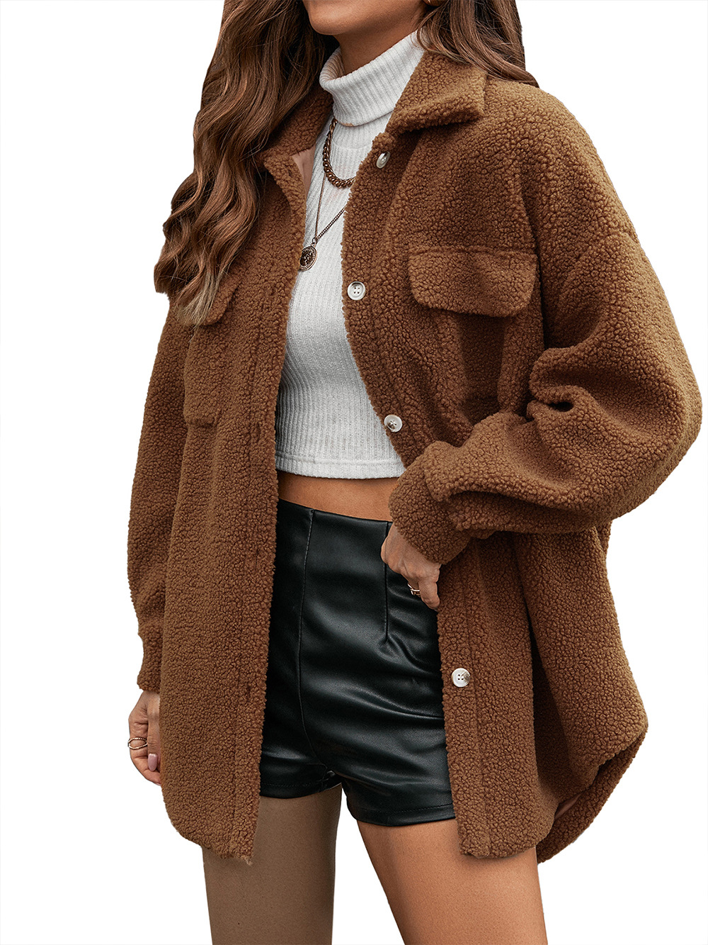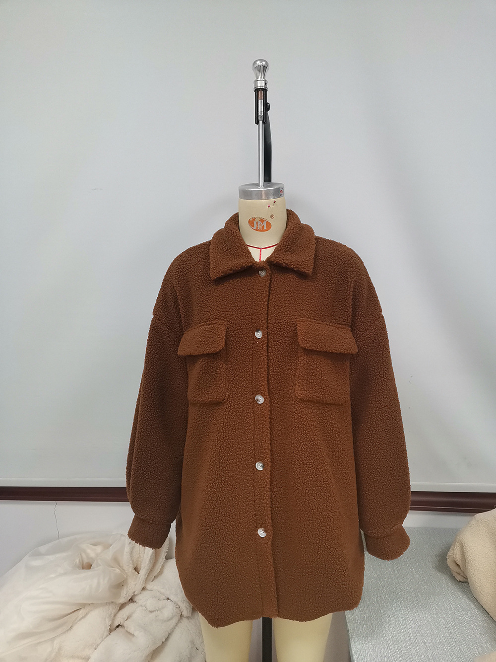 Teddy Furry Single Breasted Long Sleeve Woolen Jacket