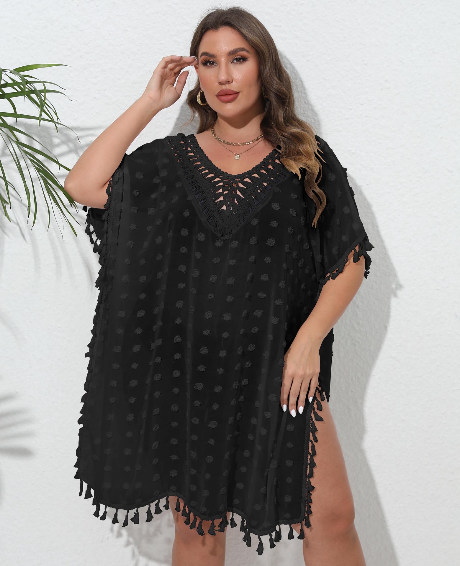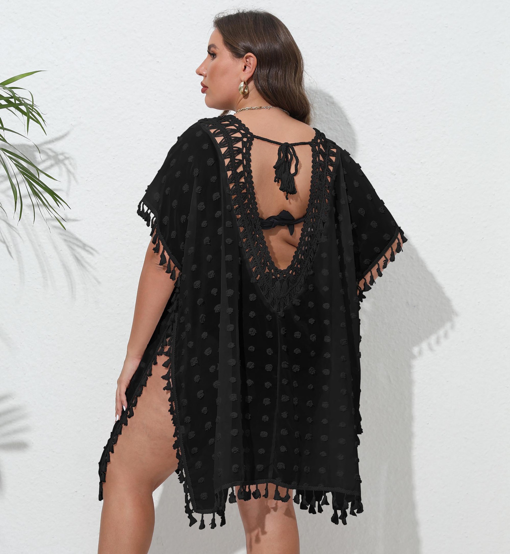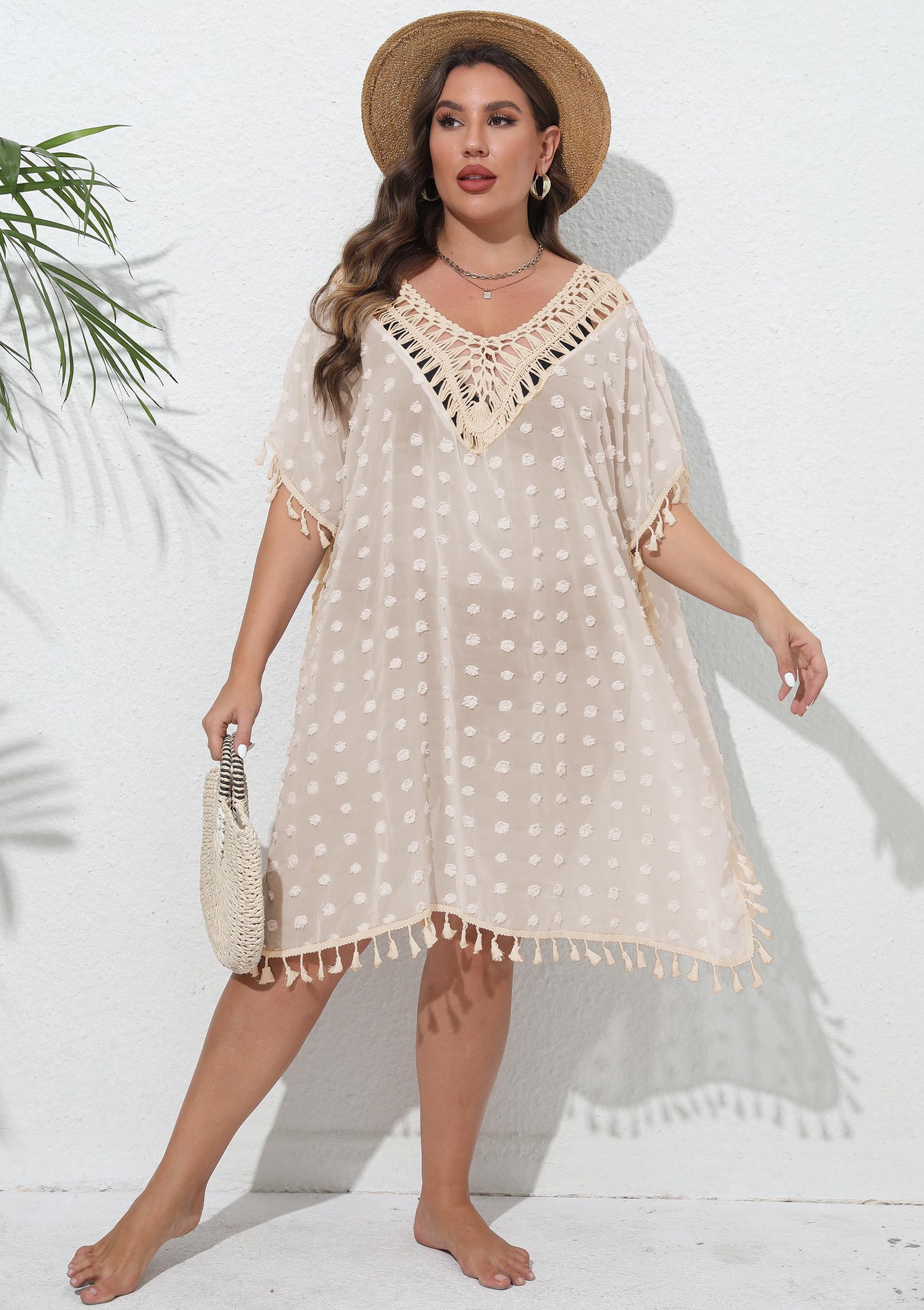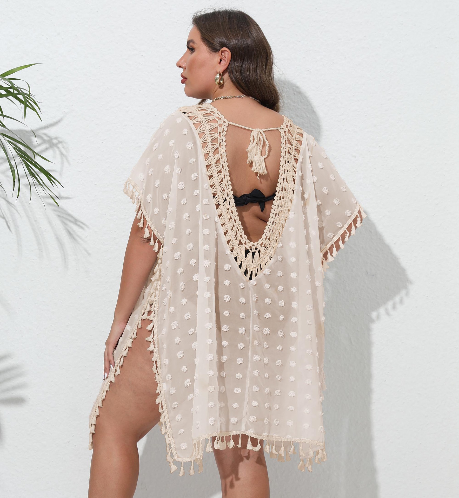 Make a stunning statement with this exquisite three-dimensional chiffon beach dress. Featuring a flattering V-neckline, playful tassel details, and an alluring see-through design, this dress perfectly balances sophistication with beachy glamour. The lightweight chiffon fabric flows beautifully, making it ideal for beach parties, resort wear, or poolside lounging.