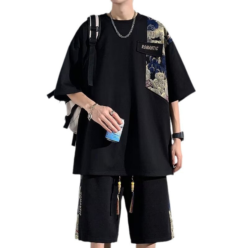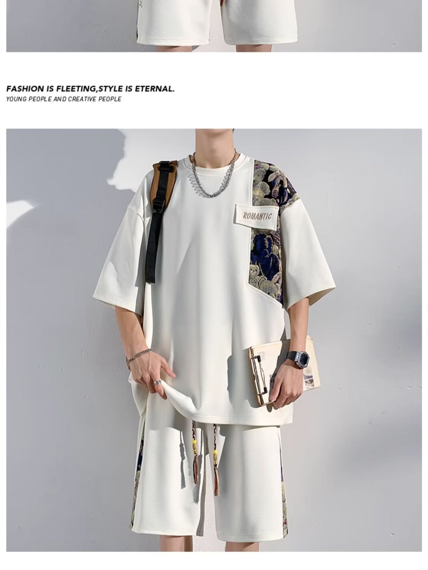 Two-piece Loose Casual Plus Size Short-sleeved Cropped Pants
