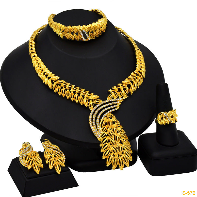 Scene: ainid Dubai bride 24k gold-plated necklace bracelet earrings ring jewelry set