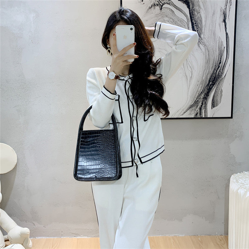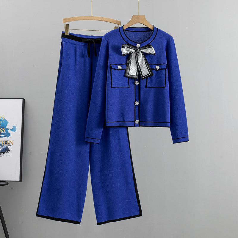 Women's Fashion Business Knitted Cardigan Wide-leg Pants Two-piece Set