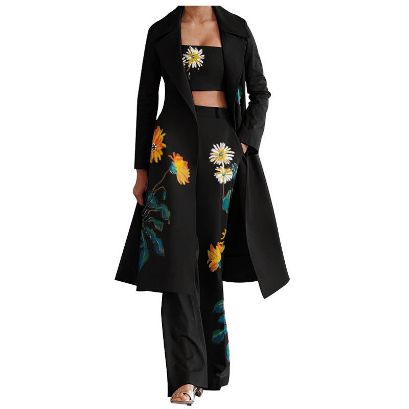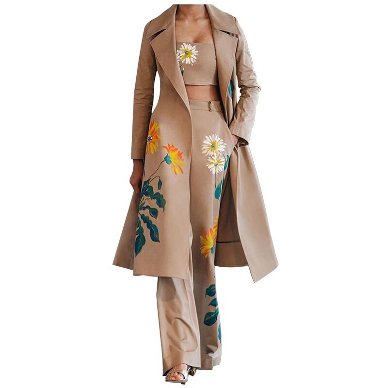 Women's Fashion Temperament Long Printed Windbreaker Jacket Set
