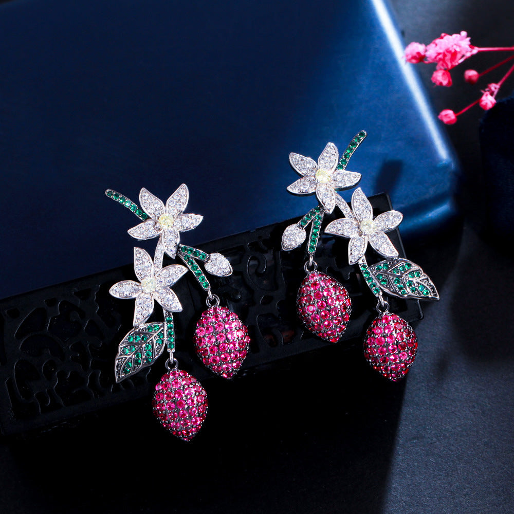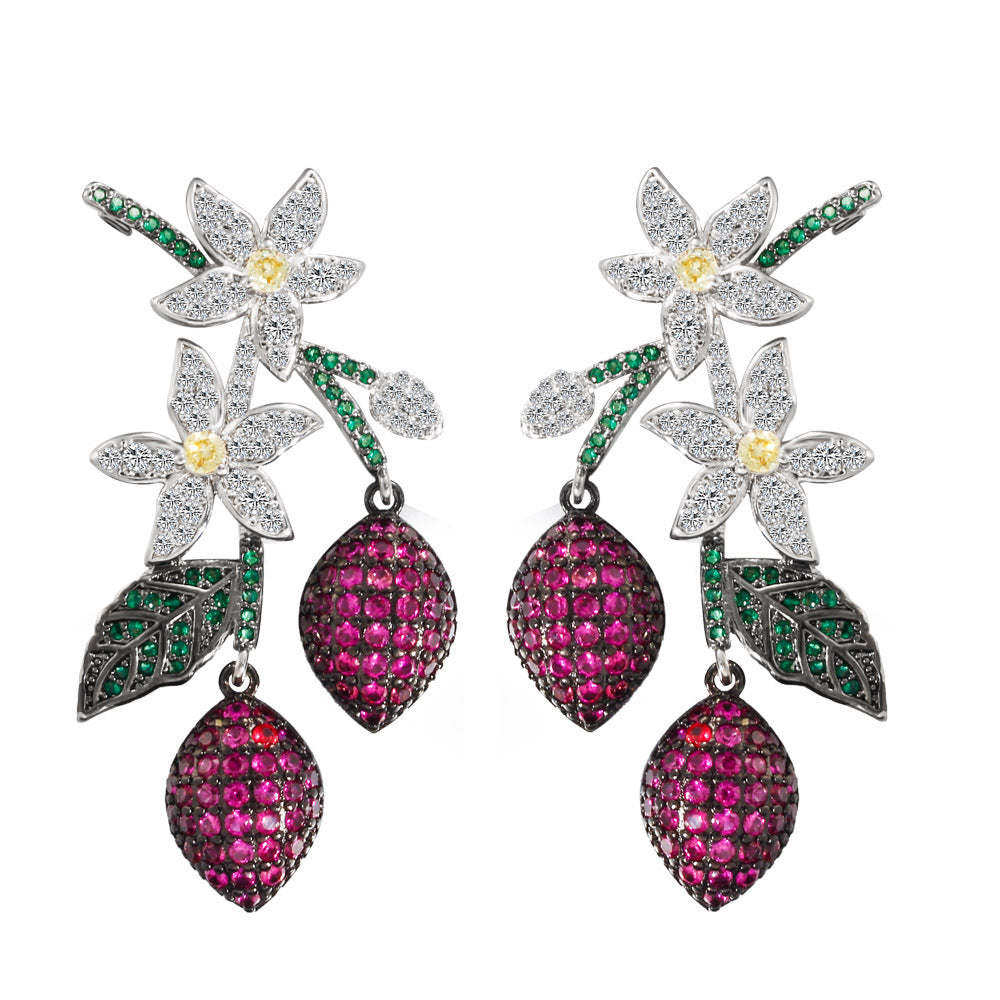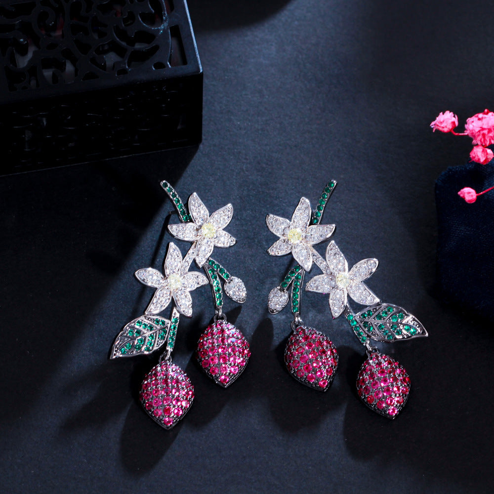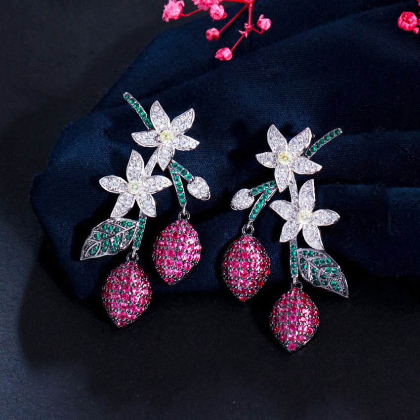 Zircon Water Drops Vintage Plant Silver Needle Camellia Earrings